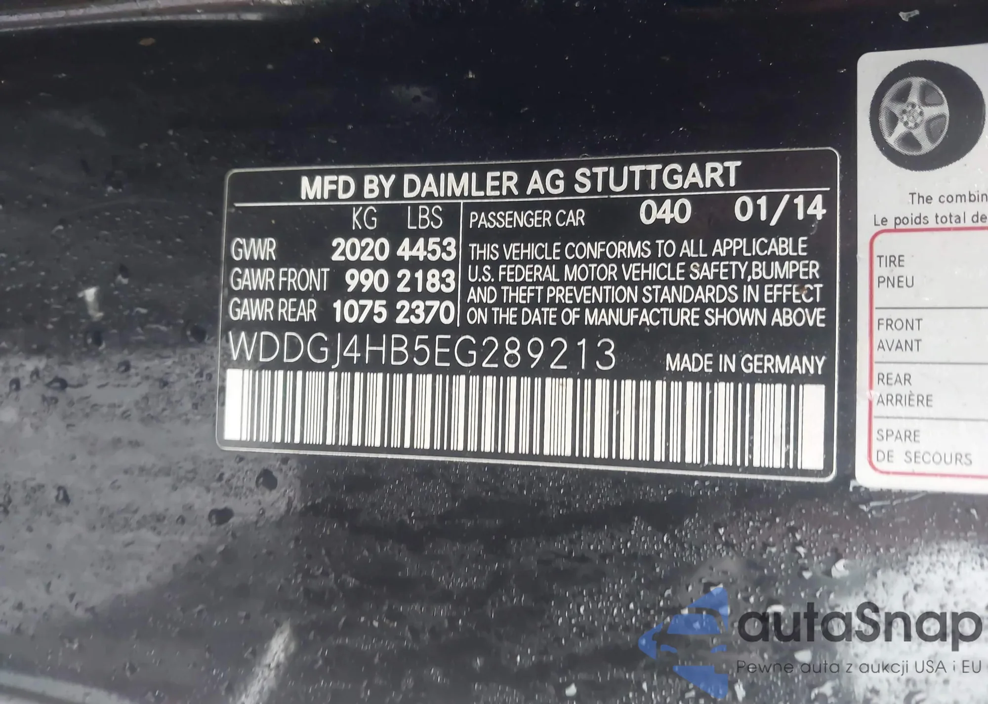 LOT: 42933366 VIN: WDDGJ4HB5EG289213