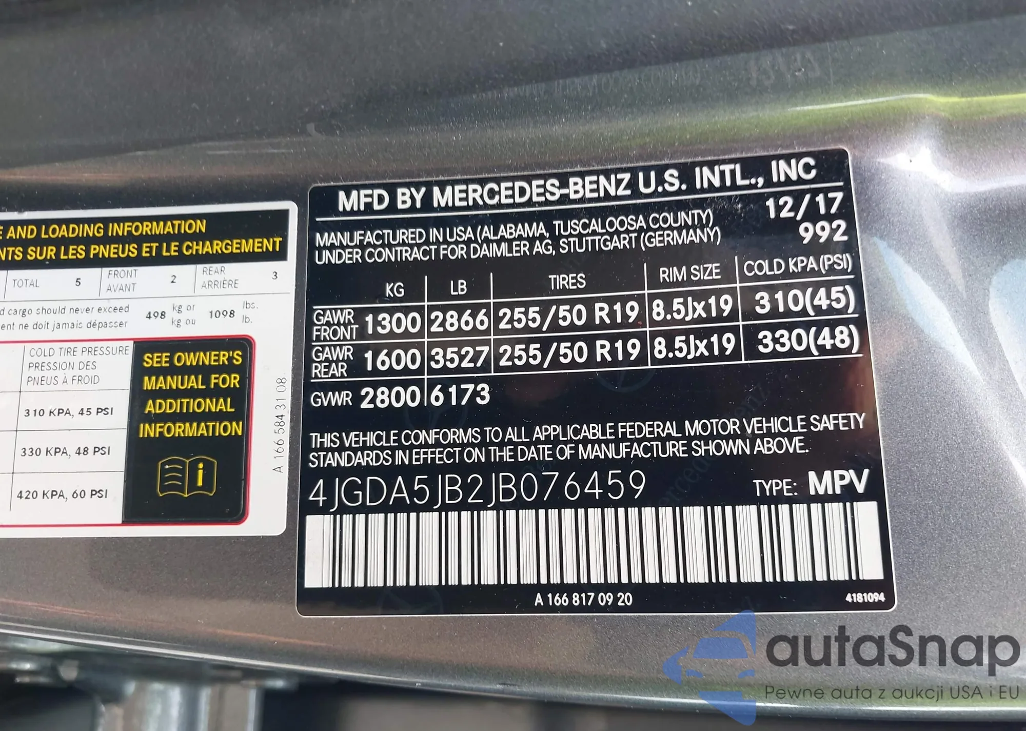 • VIN 4JGDA5JB2JB076459