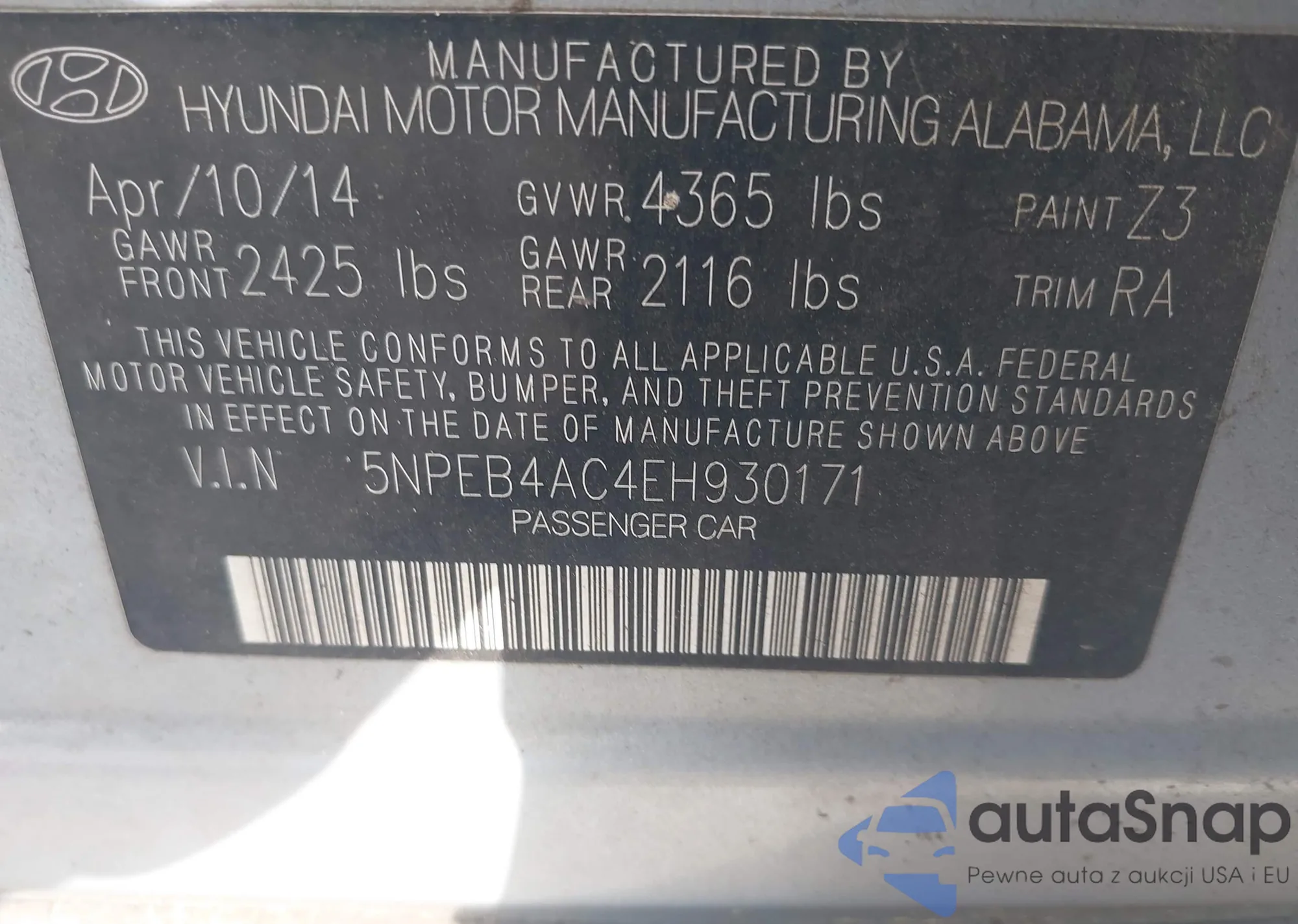 • VIN 5NPEB4AC4EH930171