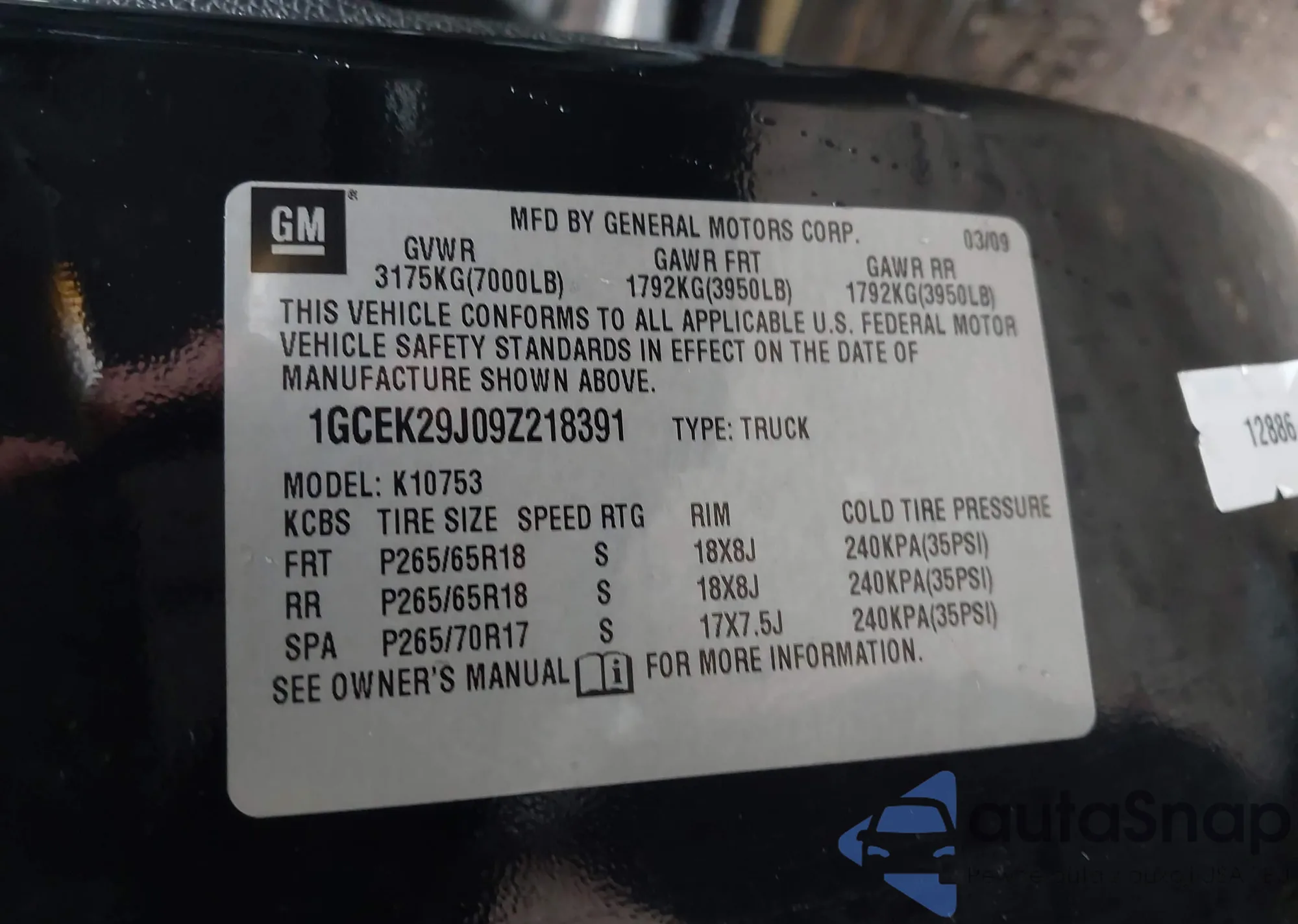 • VIN 1GCEK29J09Z218391