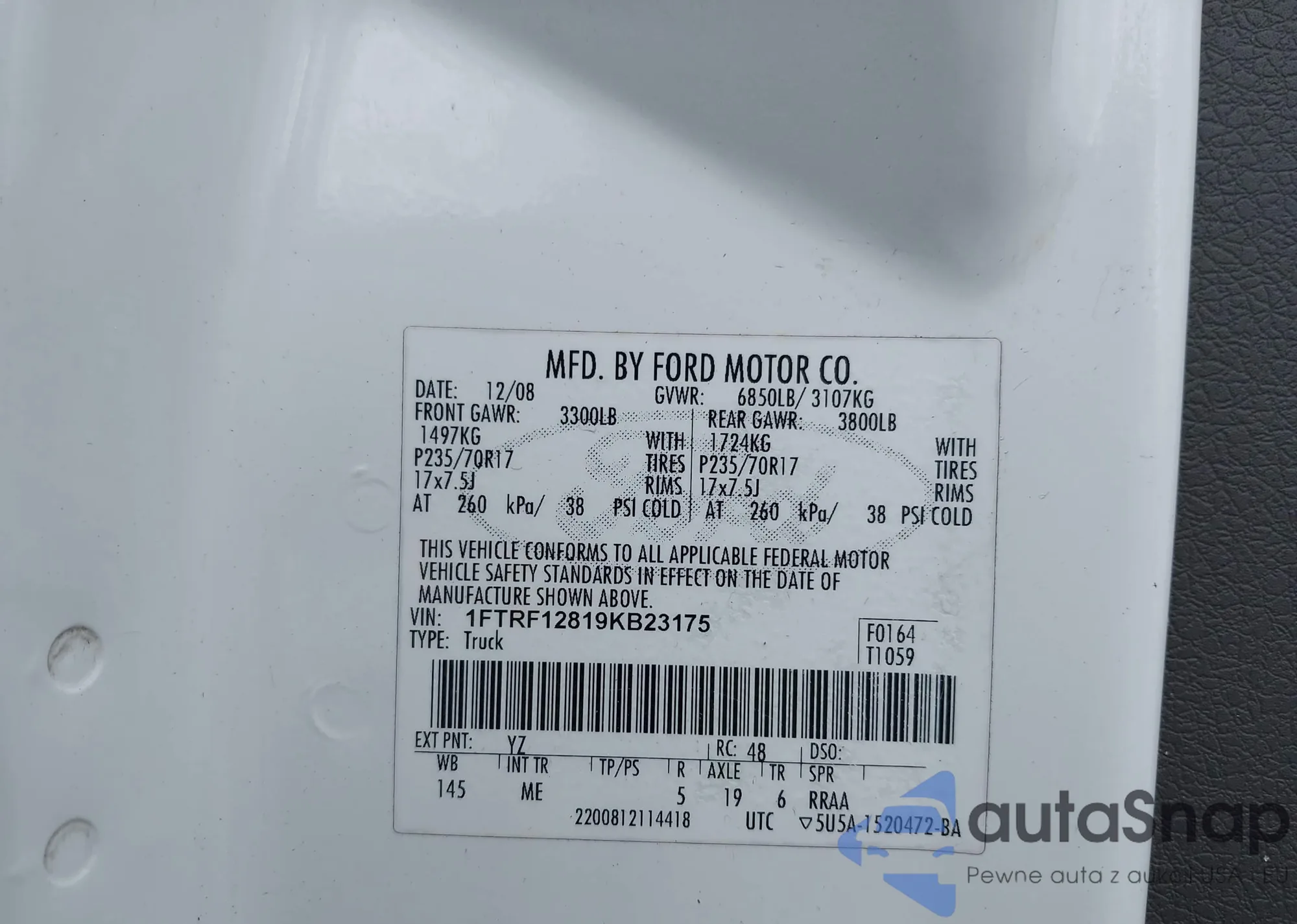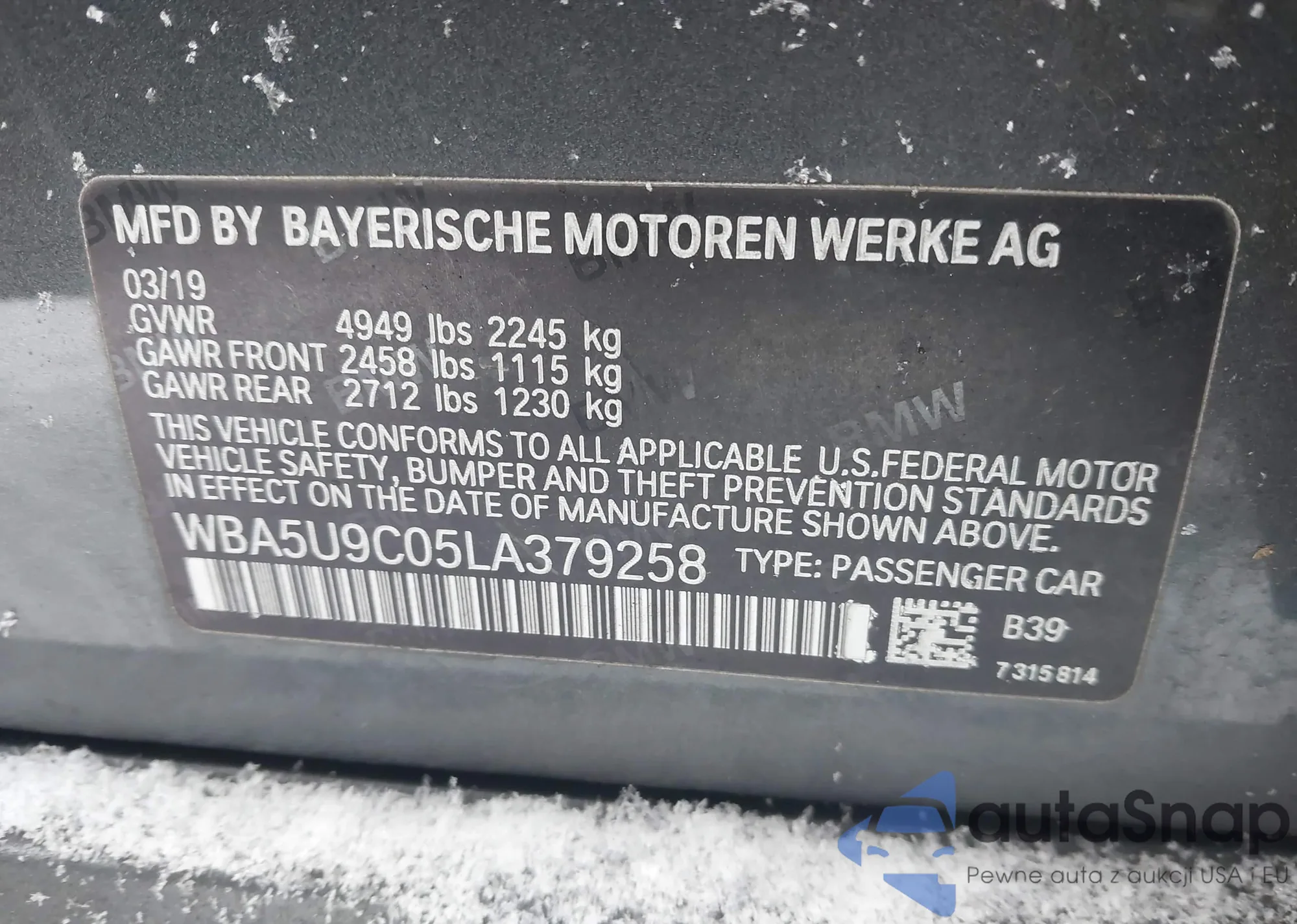 • VIN WBA5U9C05LA379258