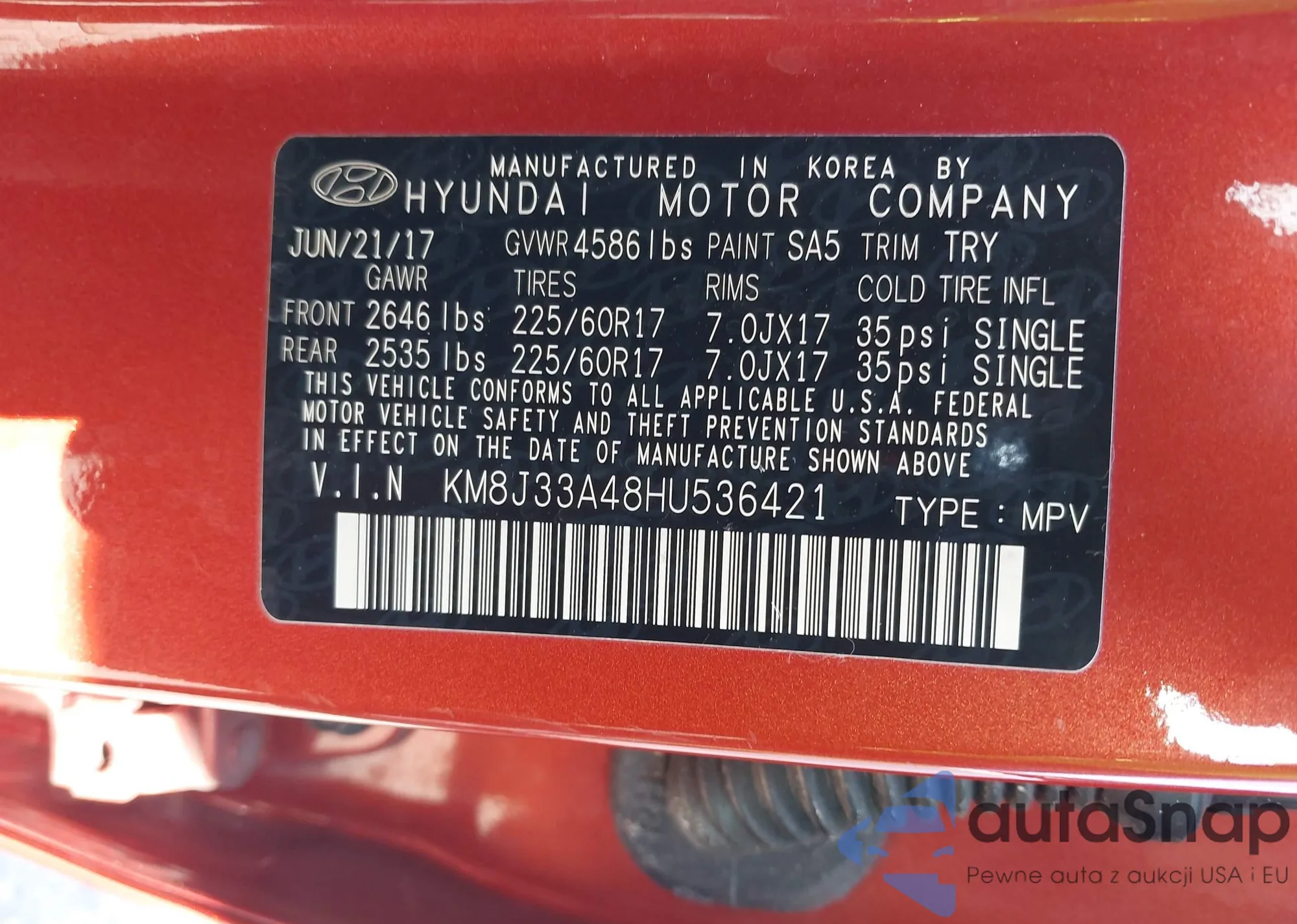 • VIN KM8J33A48HU536421