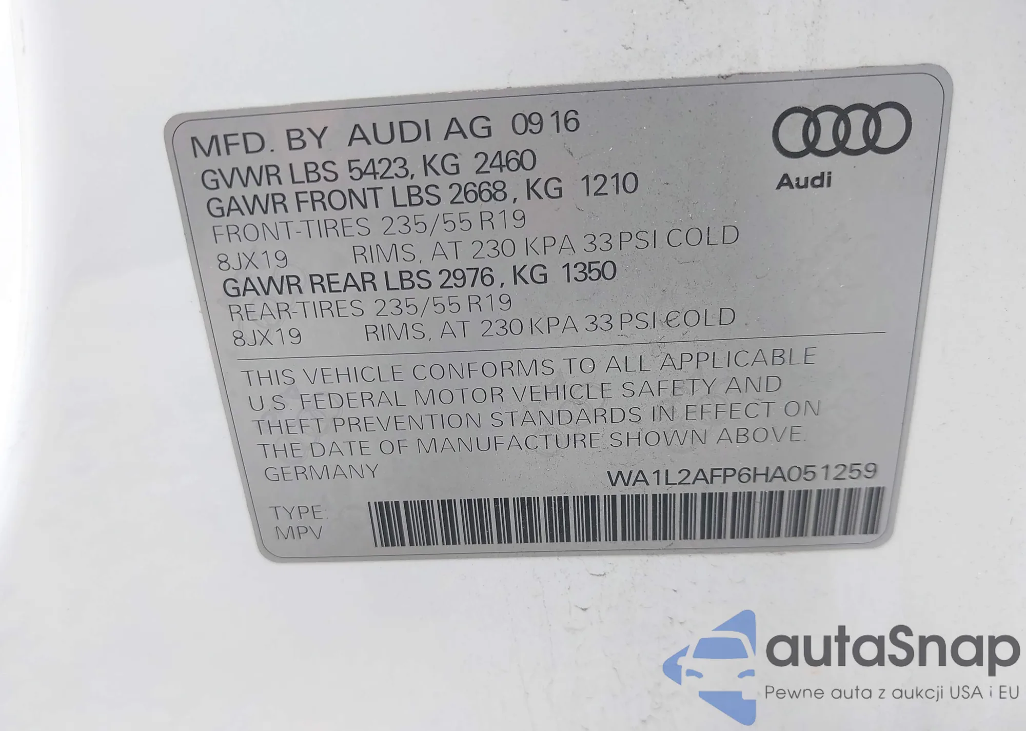 LOT: 42713236 VIN: WA1L2AFP6HA051259