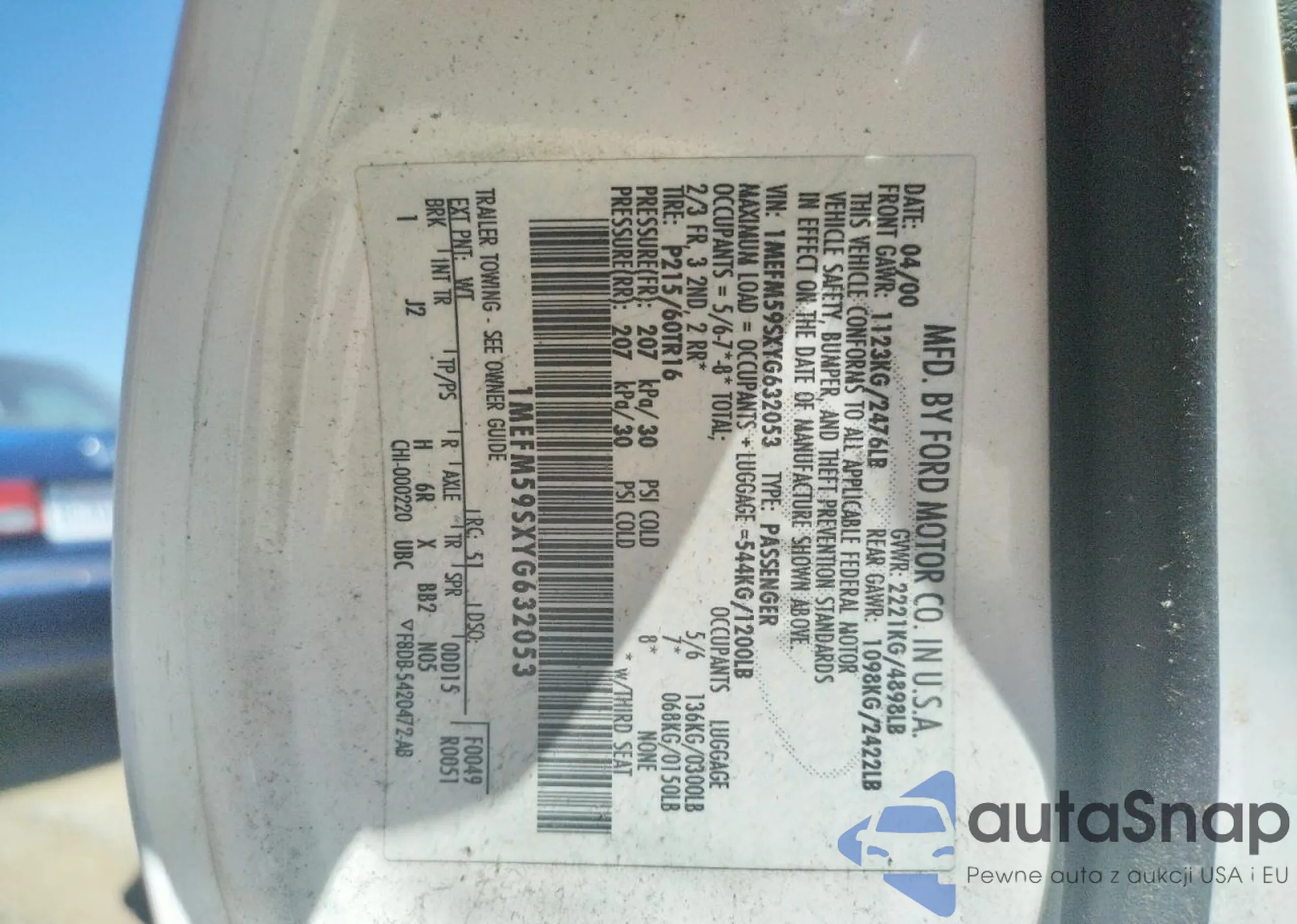 • VIN 1MEFM59SXYG632053