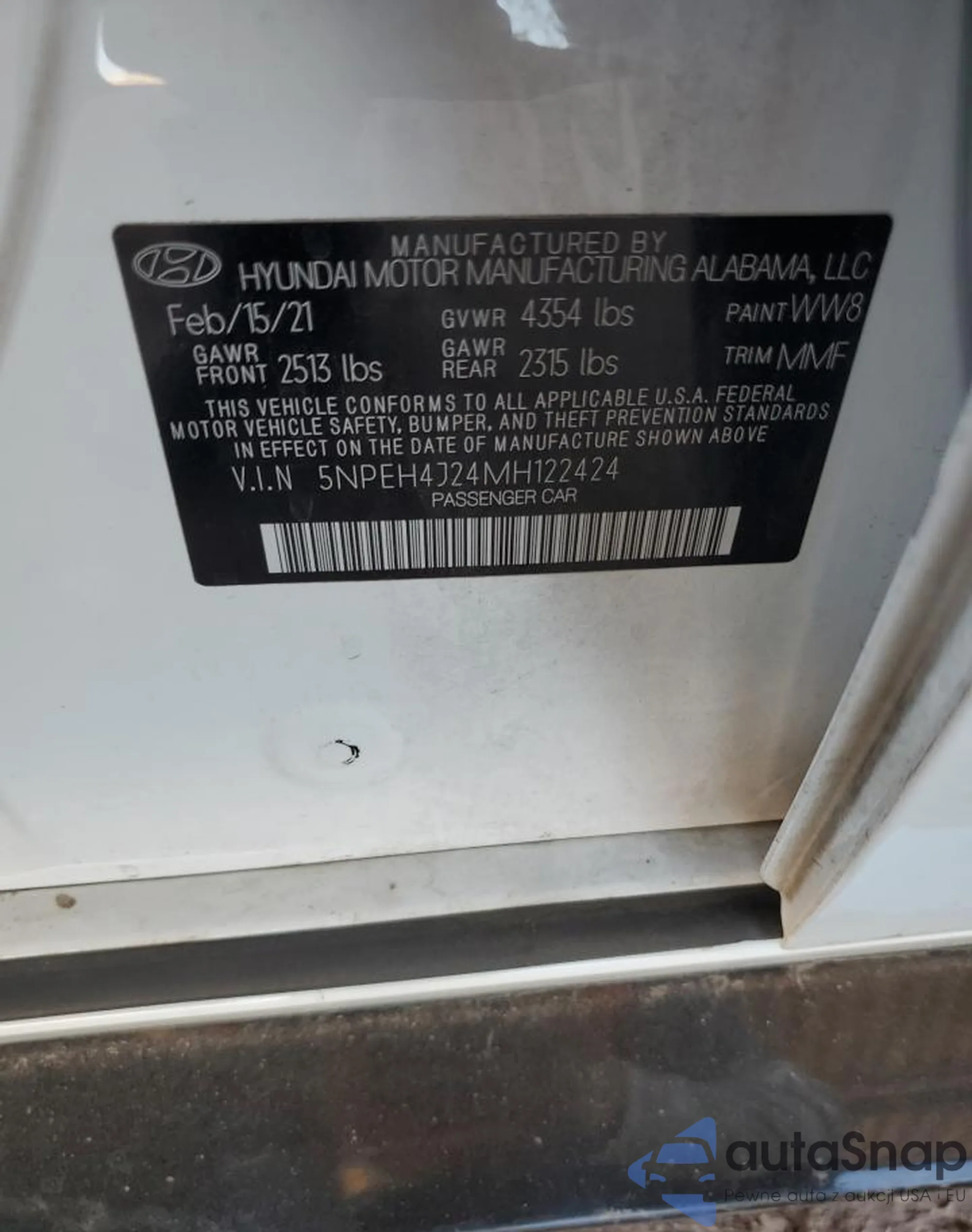 LOT: 67457715 VIN: 5NPEH4J24MH122424