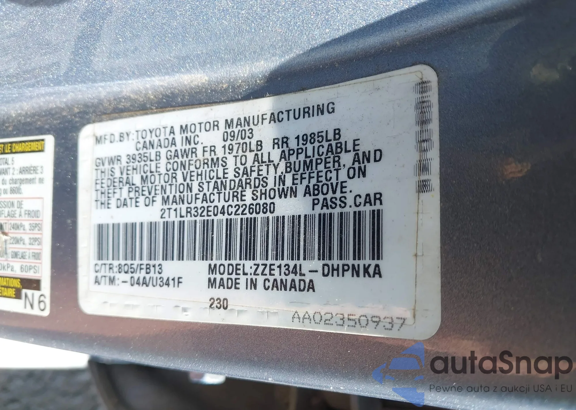 • VIN 2T1LR32E04C226080