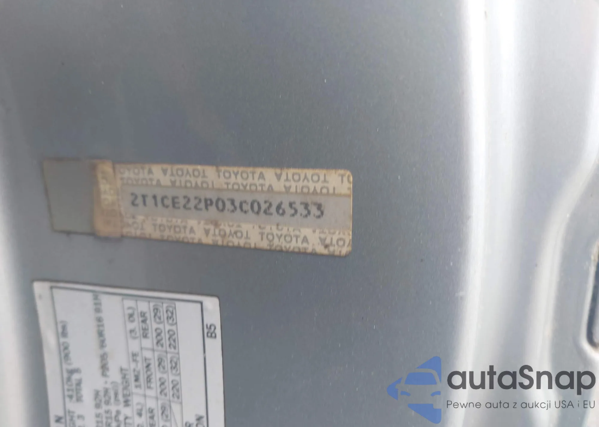 • VIN 2T1CE22P03C026533