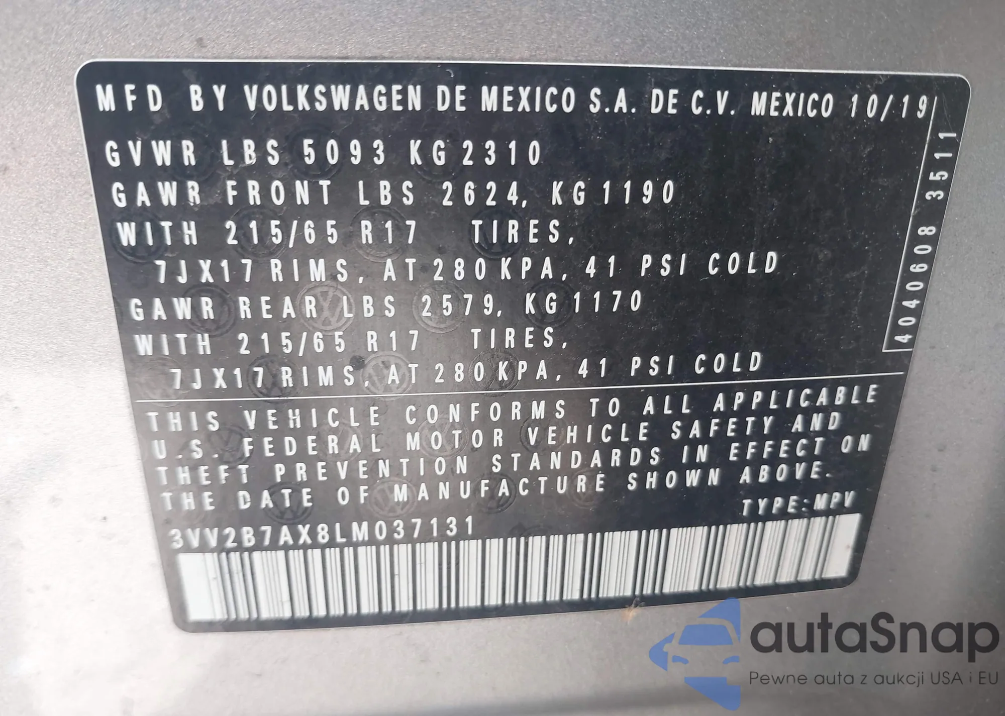 • VIN 3VV2B7AX8LM037131