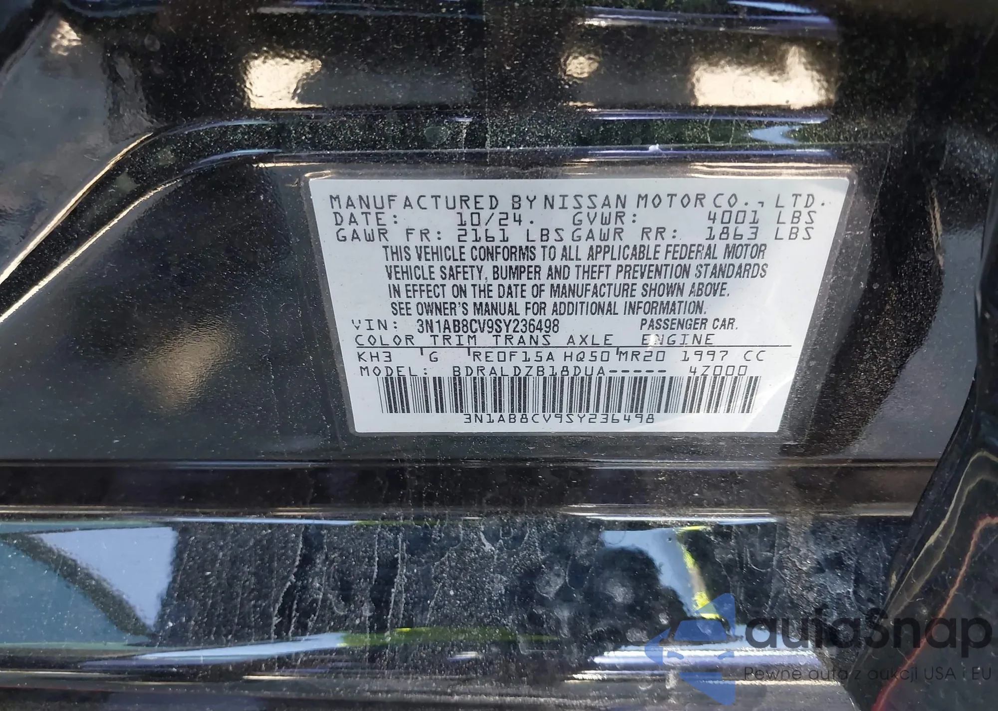 • VIN 3N1AB8CV9SY236498