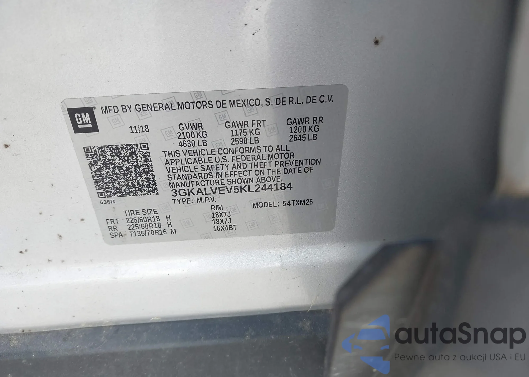 LOT: 42176961 VIN: 3GKALVEV5KL244184