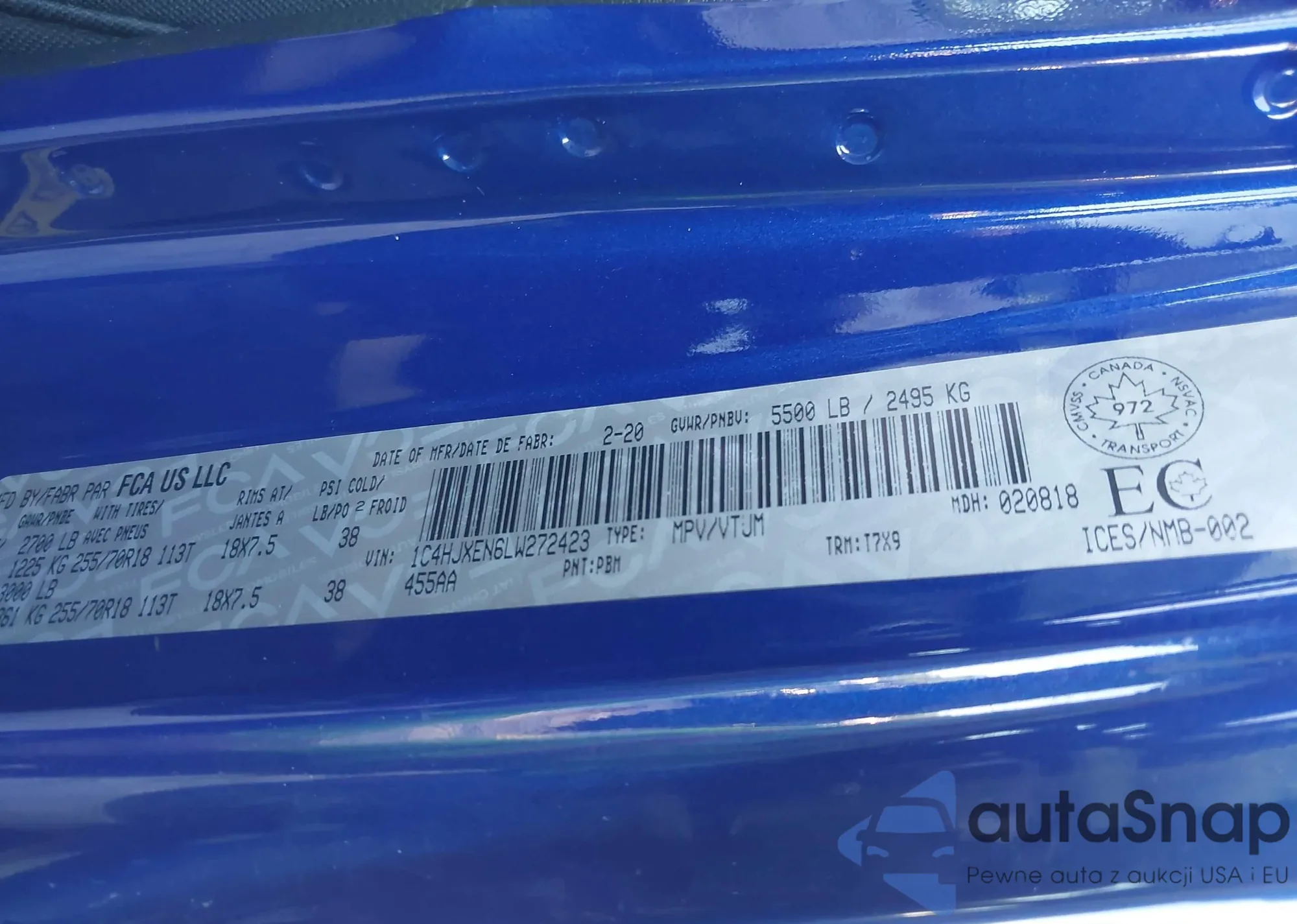 • VIN 1C4HJXEN6LW272423
