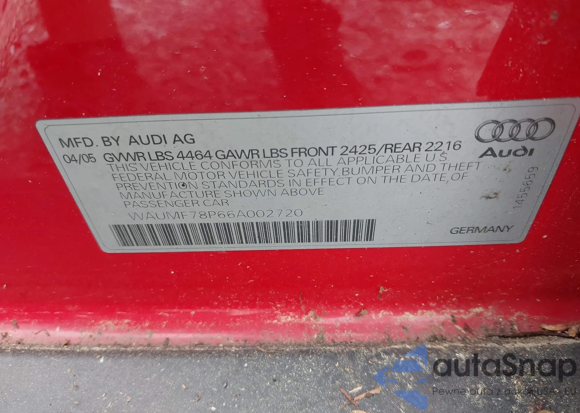 LOT: 42969119 VIN: WAUMF78P66A002720