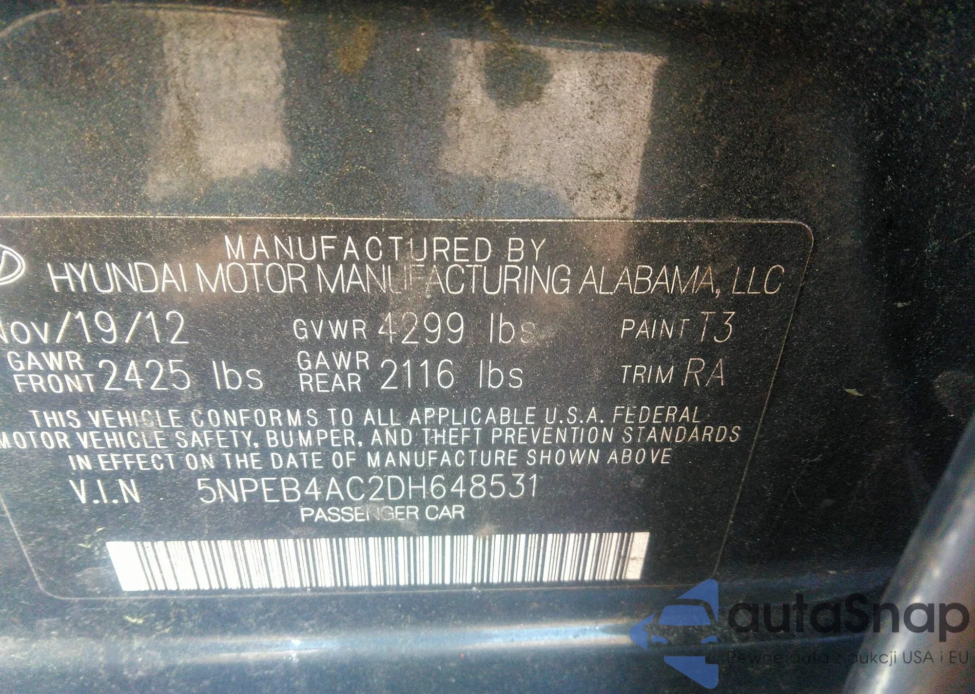 • VIN 5NPEB4AC2DH648531
