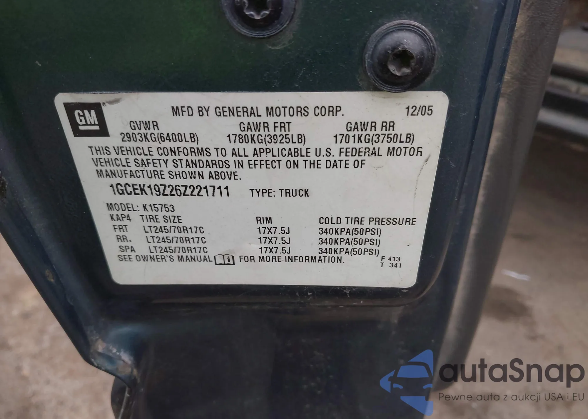 LOT: 42882557 VIN: 1GCEK19Z26Z221711