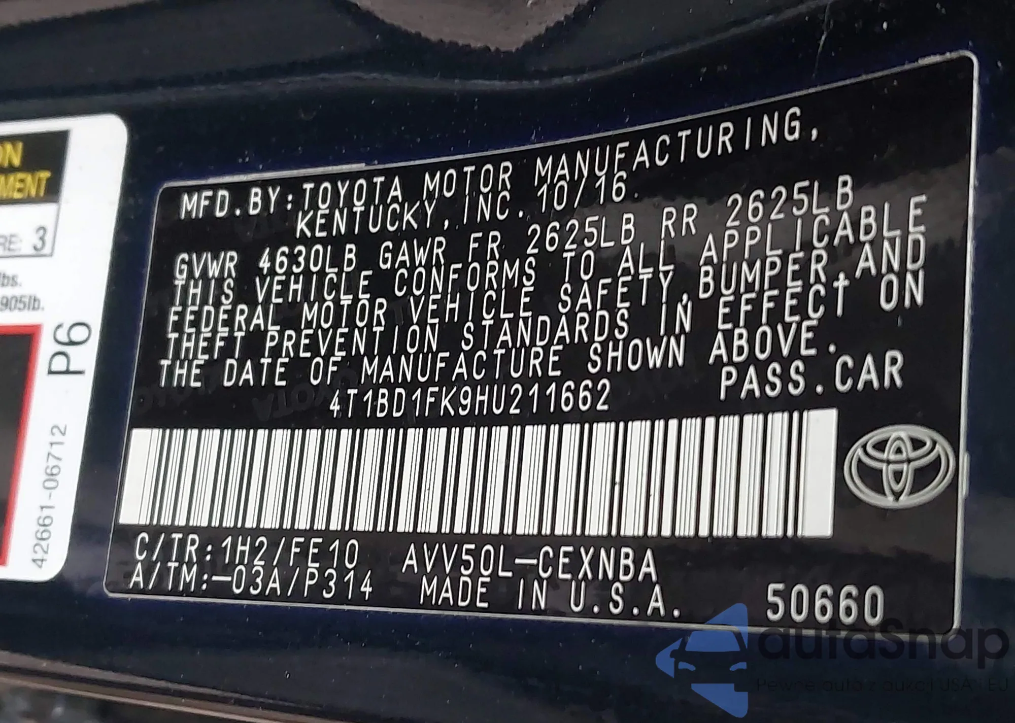 • VIN 4T1BF1FK2FU894991