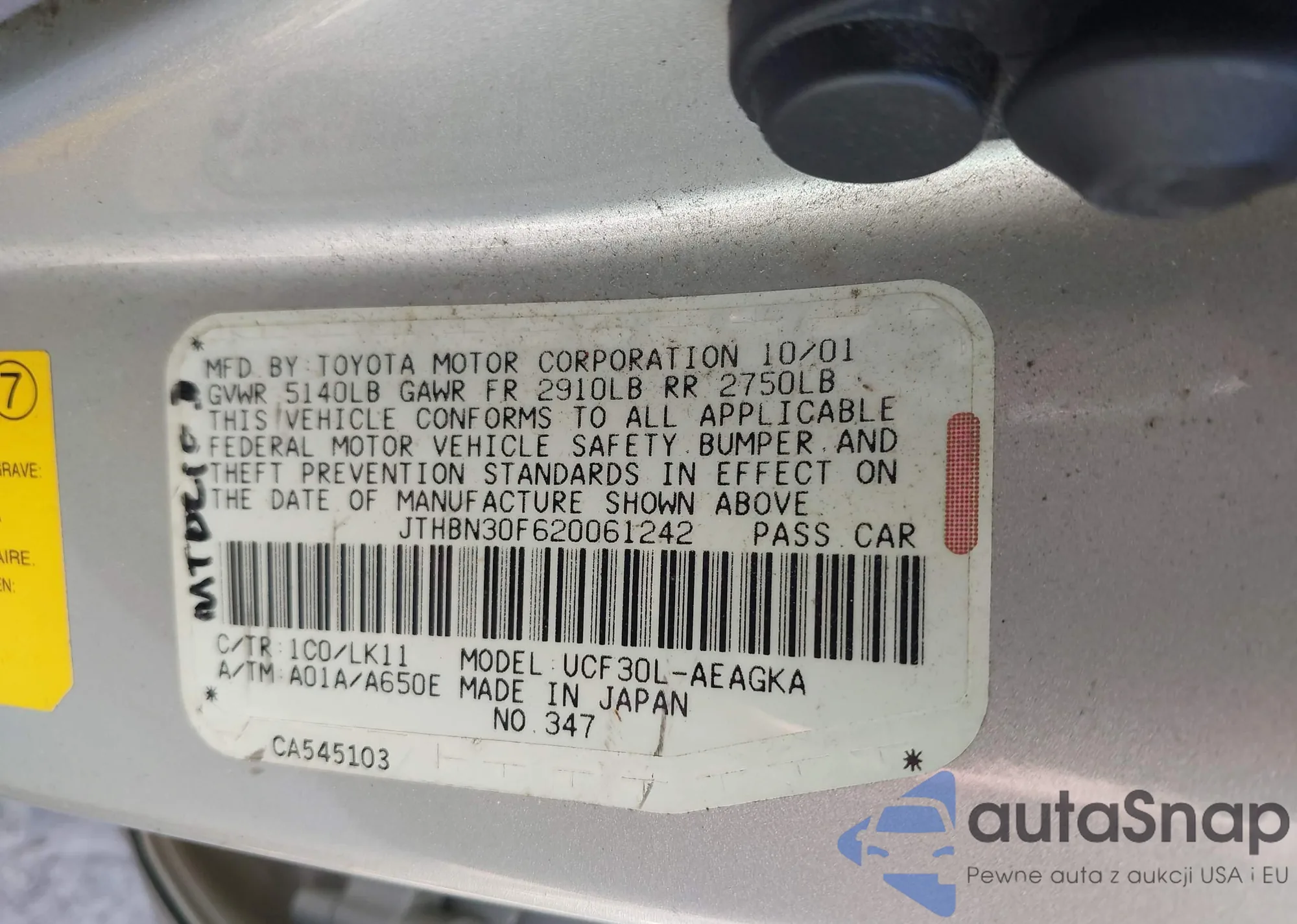 LOT: 42691623 VIN: JTHBN30F620061242