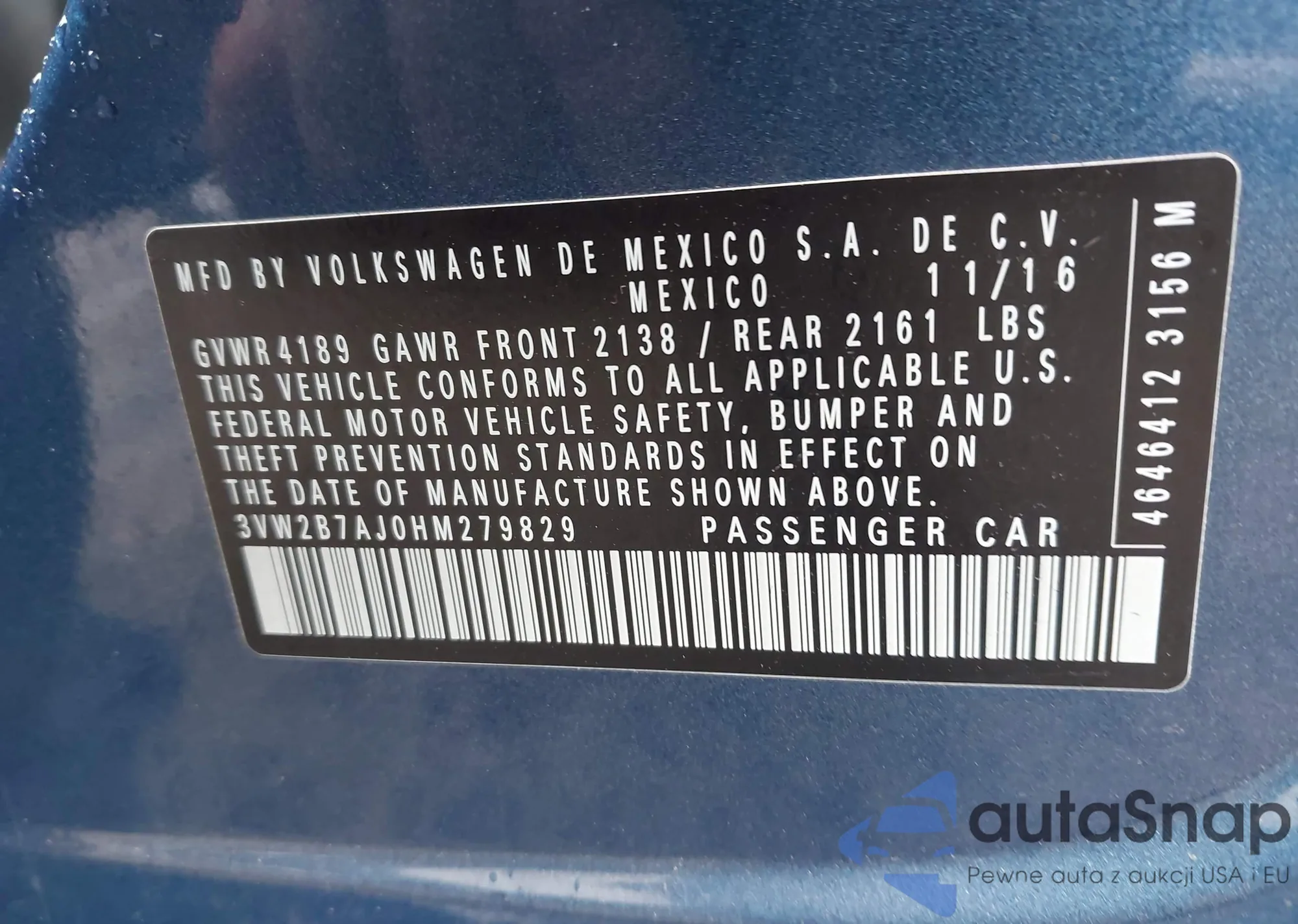 • VIN 3VW2B7AJ0HM279829