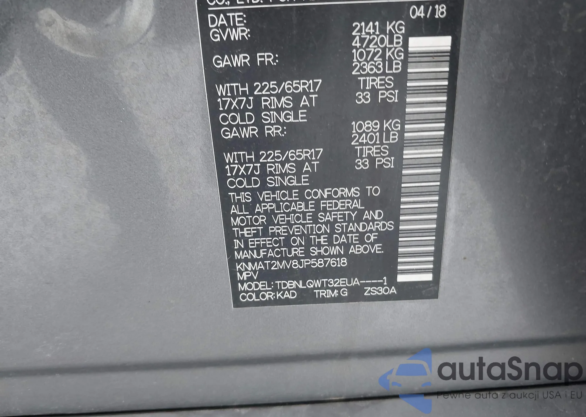 LOT: 42660931 VIN: KNMAT2MV8JP587618