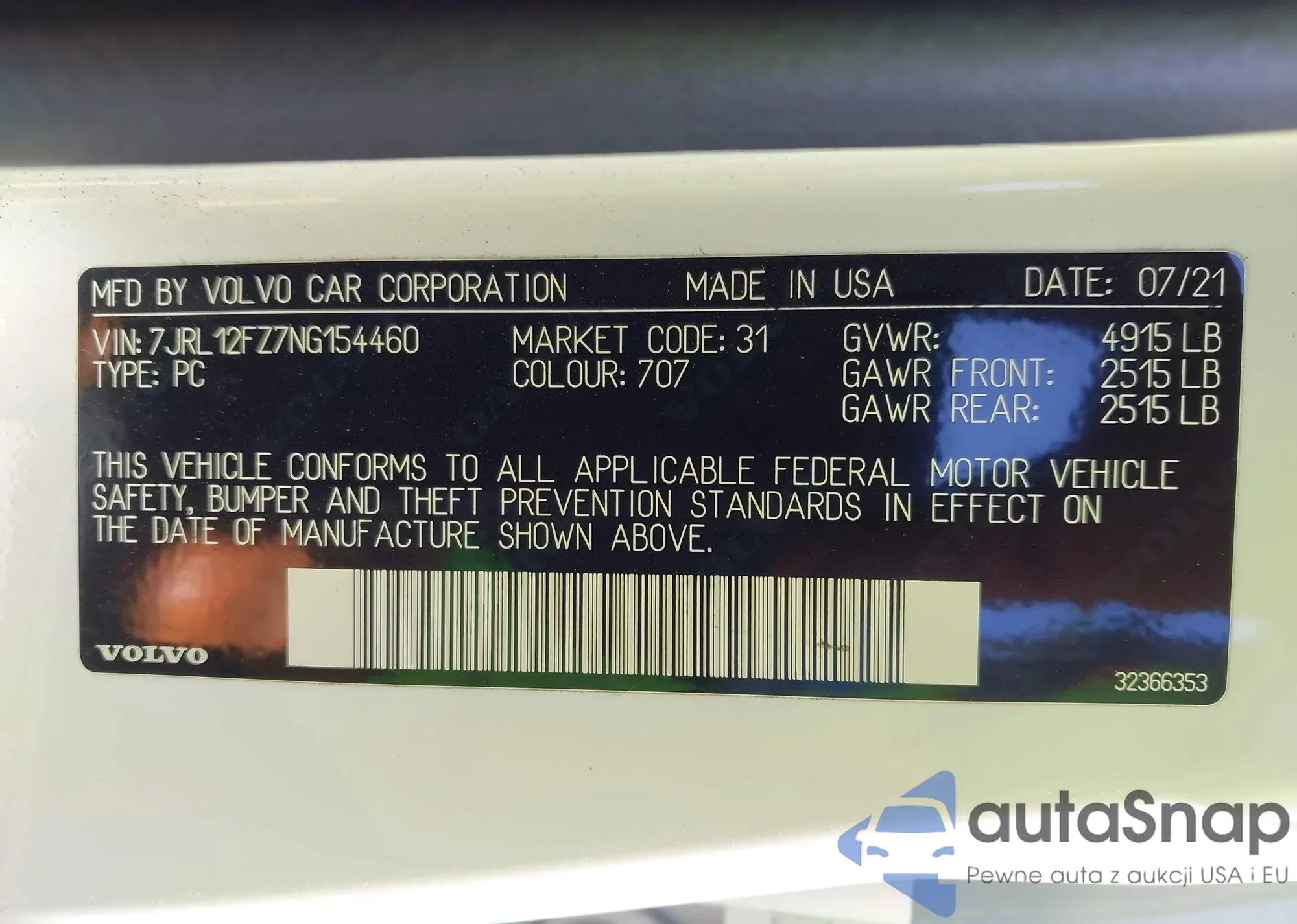 LOT: 42730829 VIN: 7JRL12FZ7NG154460