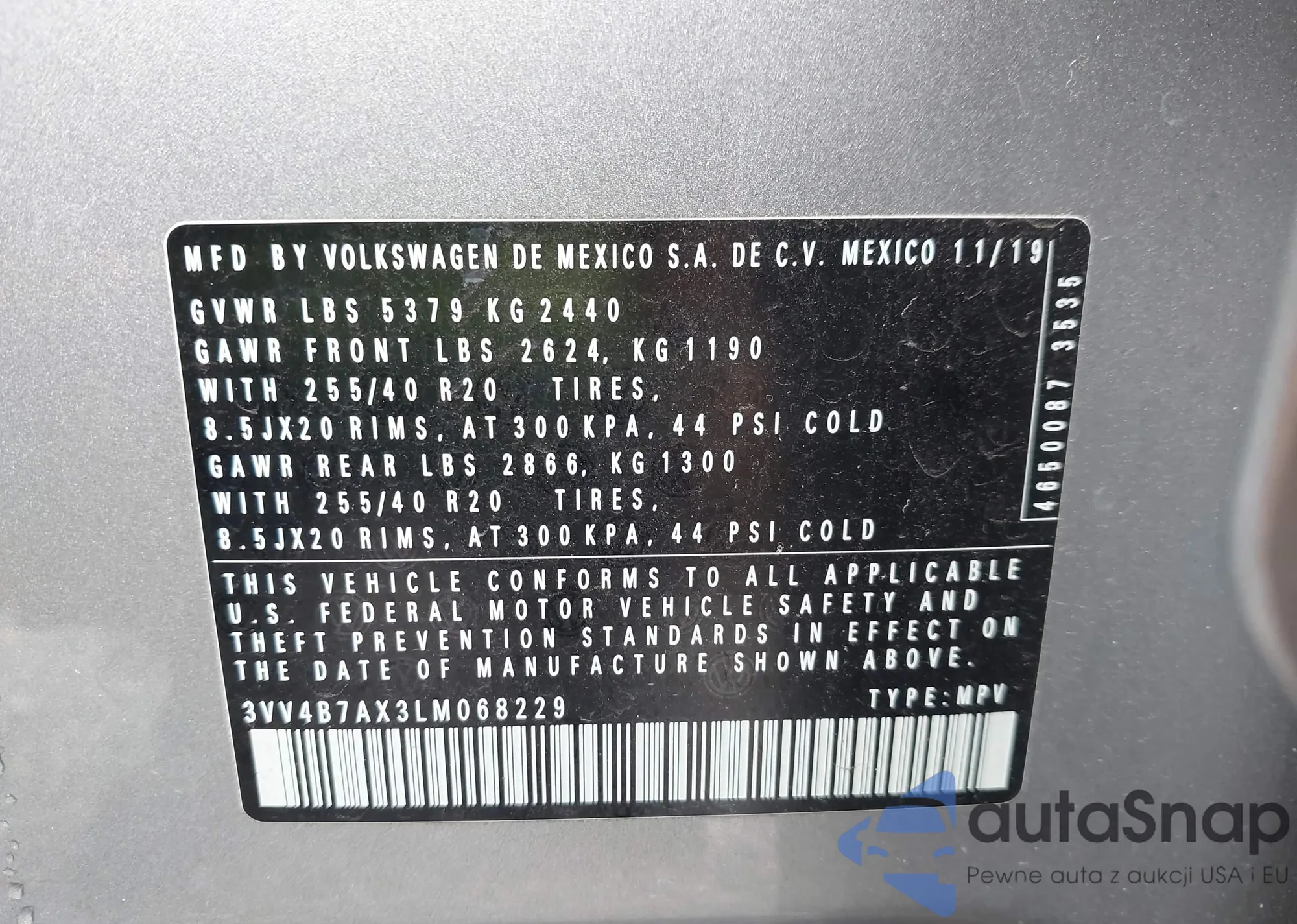 • VIN 3VV4B7AX3LM068229