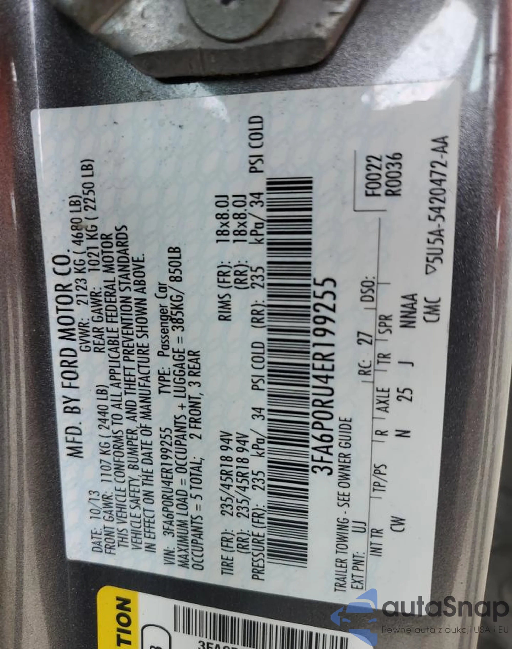 • VIN 3GYFNAE39DS540315