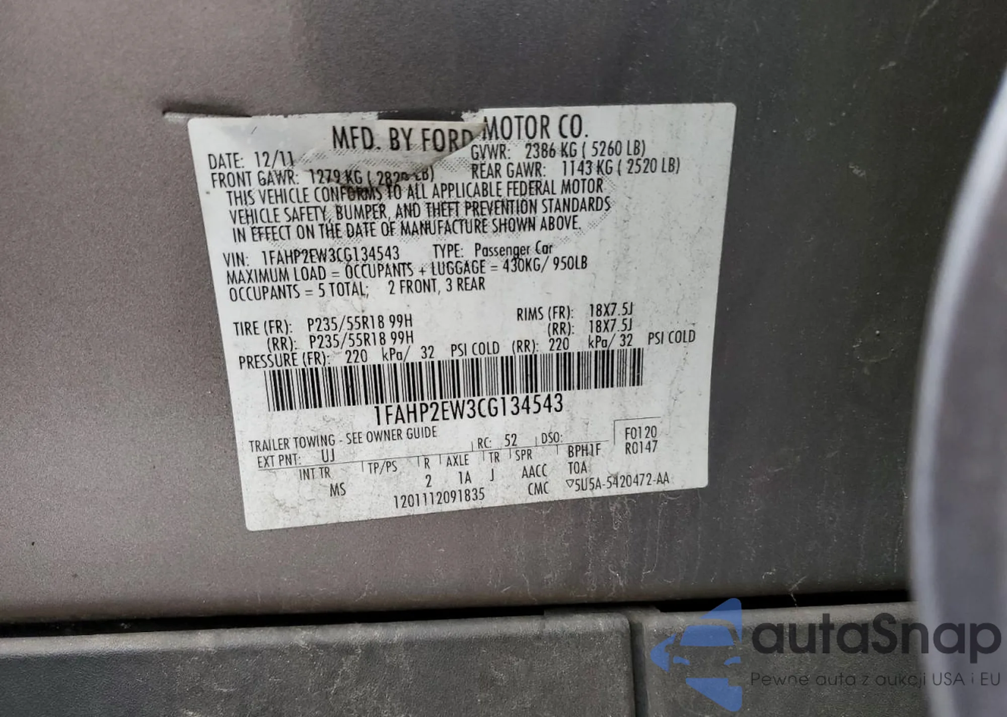 • VIN 1FAHP2EW3CG134543