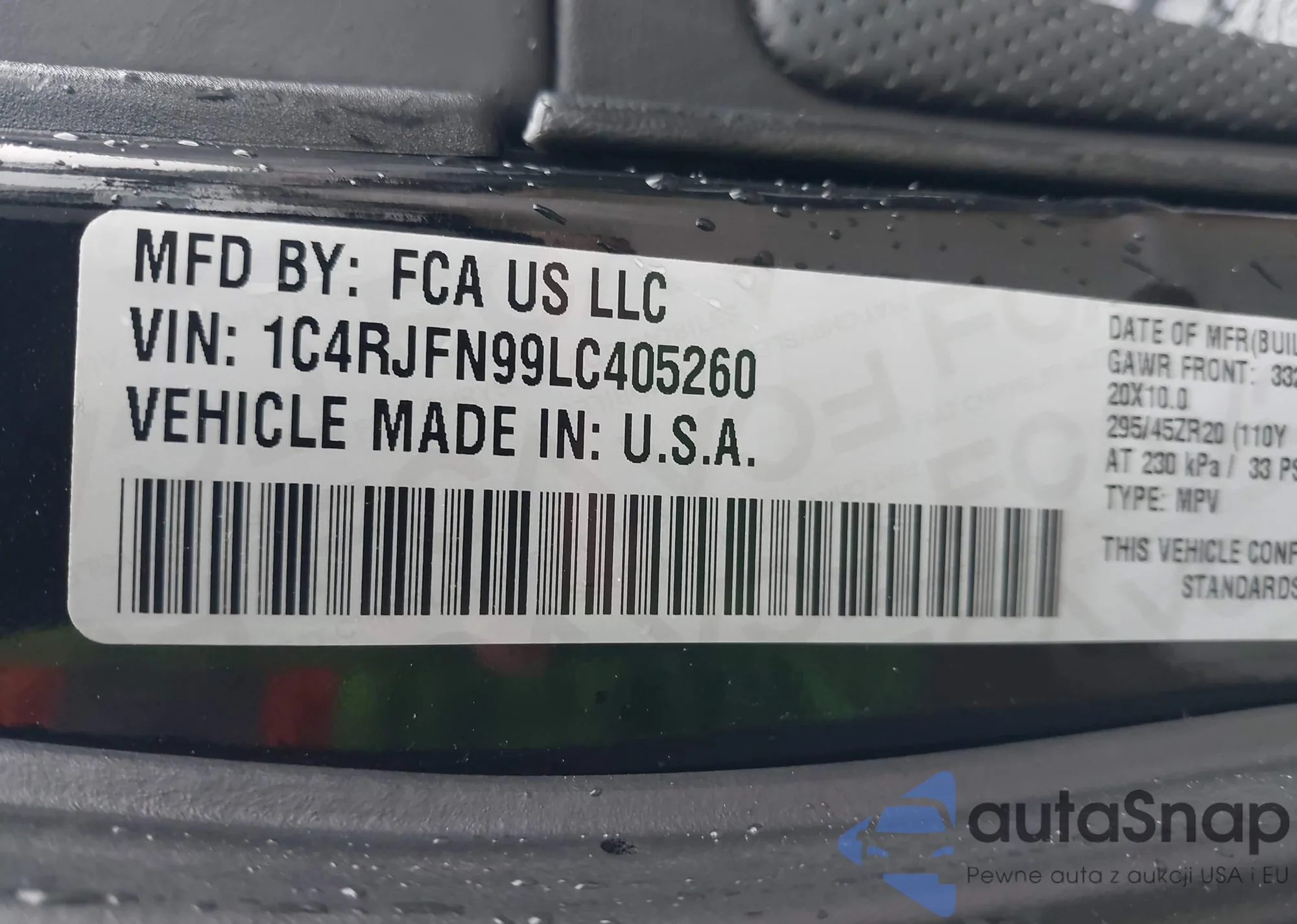 LOT: 42021358 VIN: 1C4RJFN99LC405260