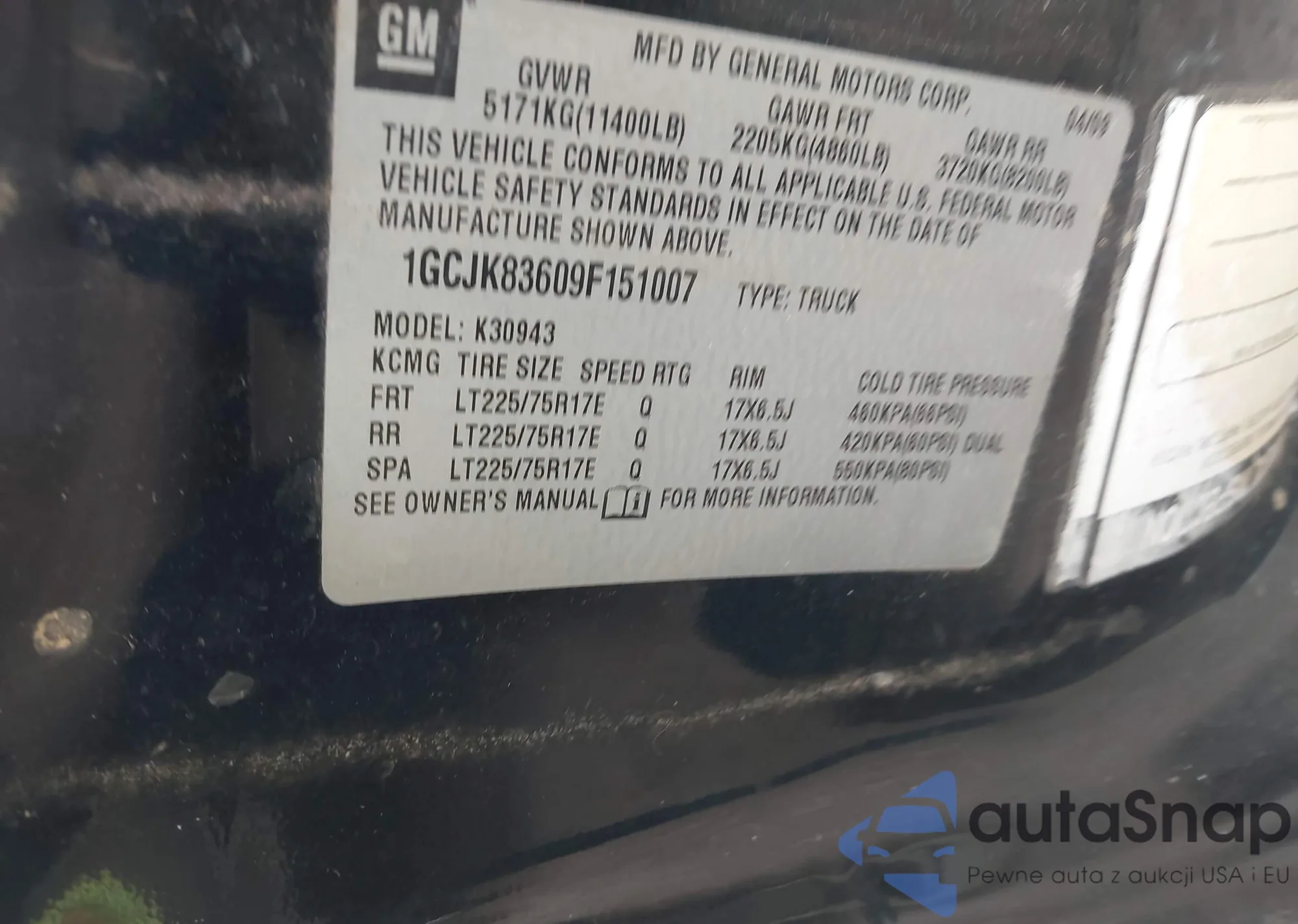 LOT: 42114241 VIN: 1GCJK83609F151007