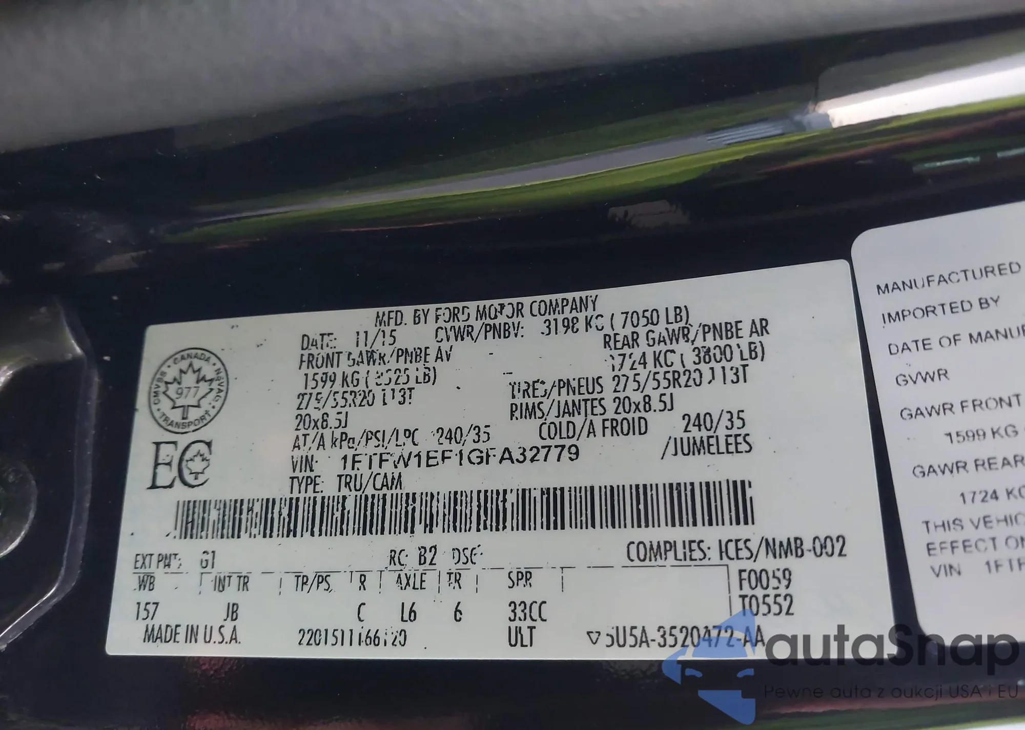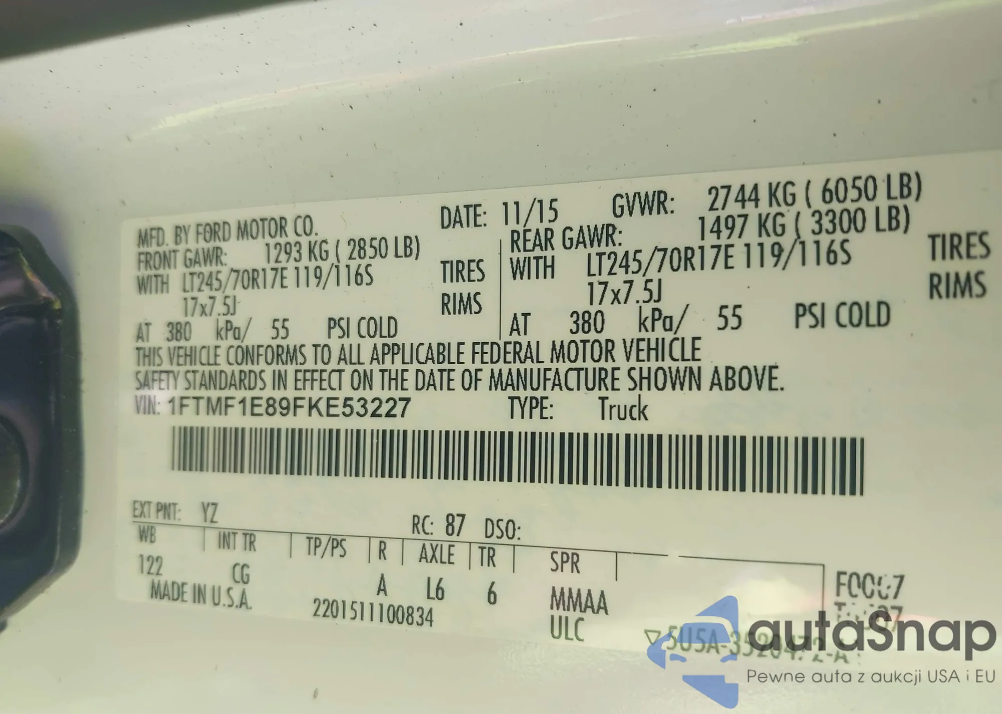 • VIN 1FT7W2BT1CEB94903