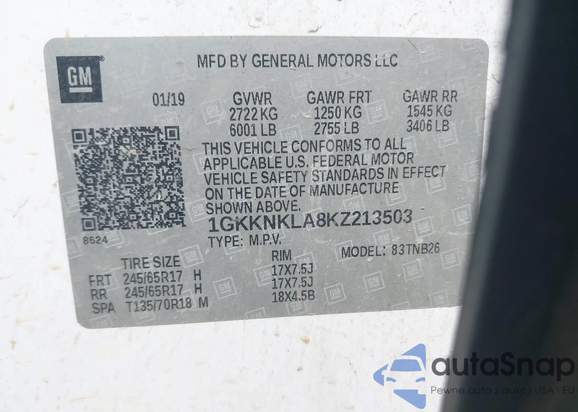 LOT: 42625584 VIN: 1GKKNKLA8KZ213503