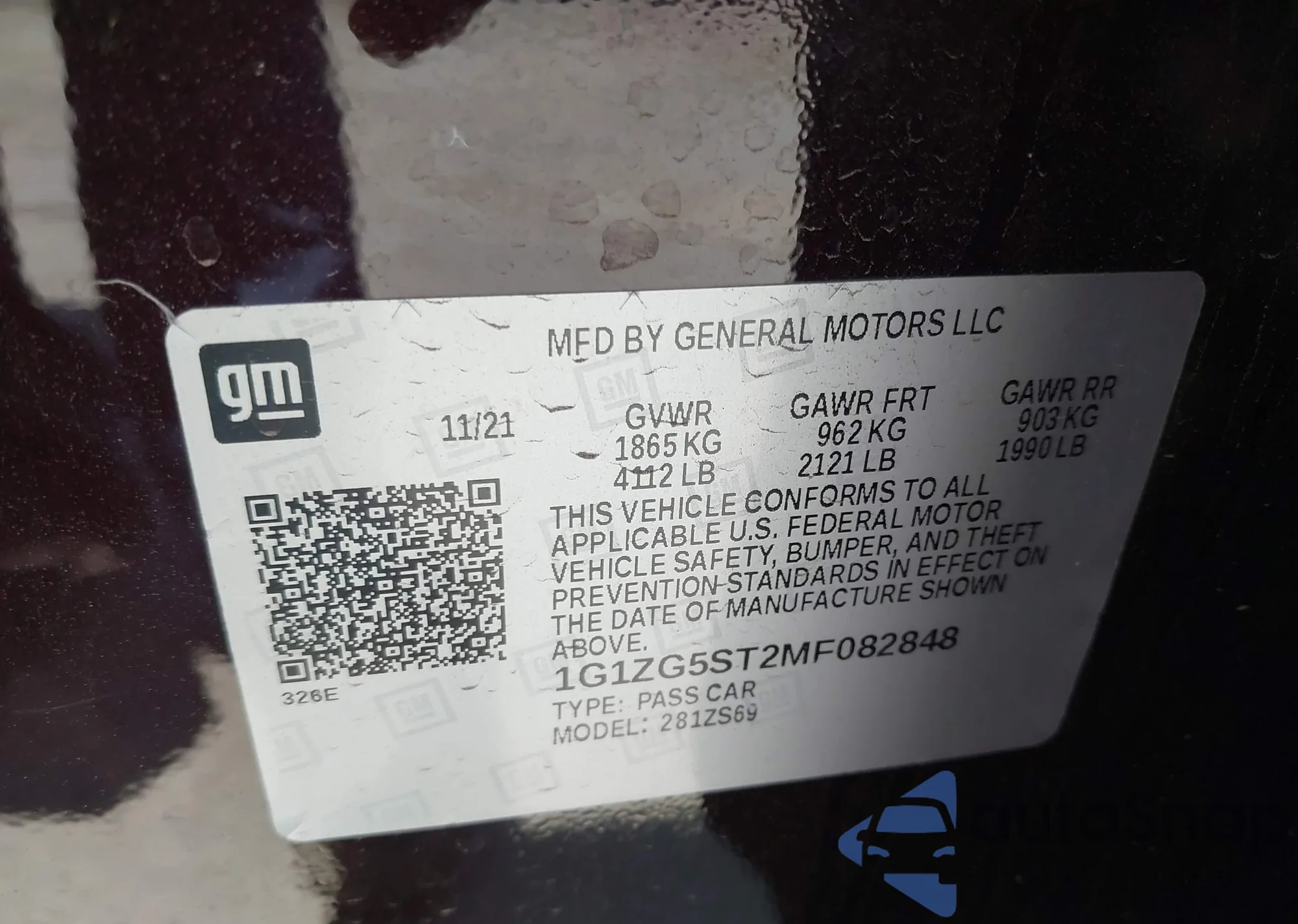 • VIN 1G1ZG5ST2MF082848