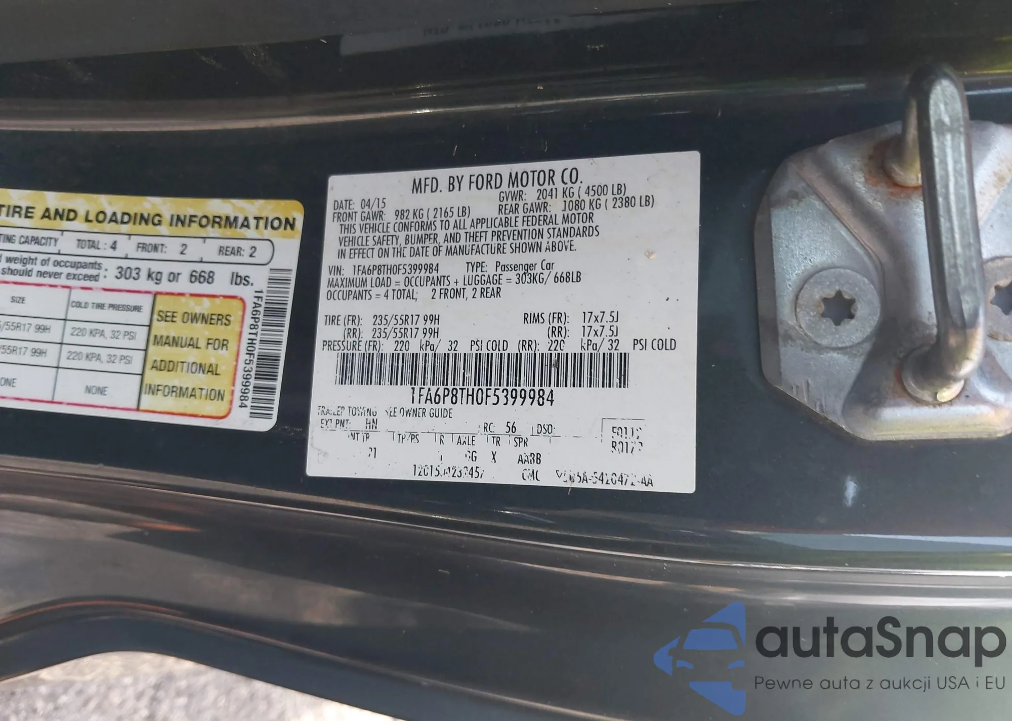 • VIN 1FA6P8TH0F5399984