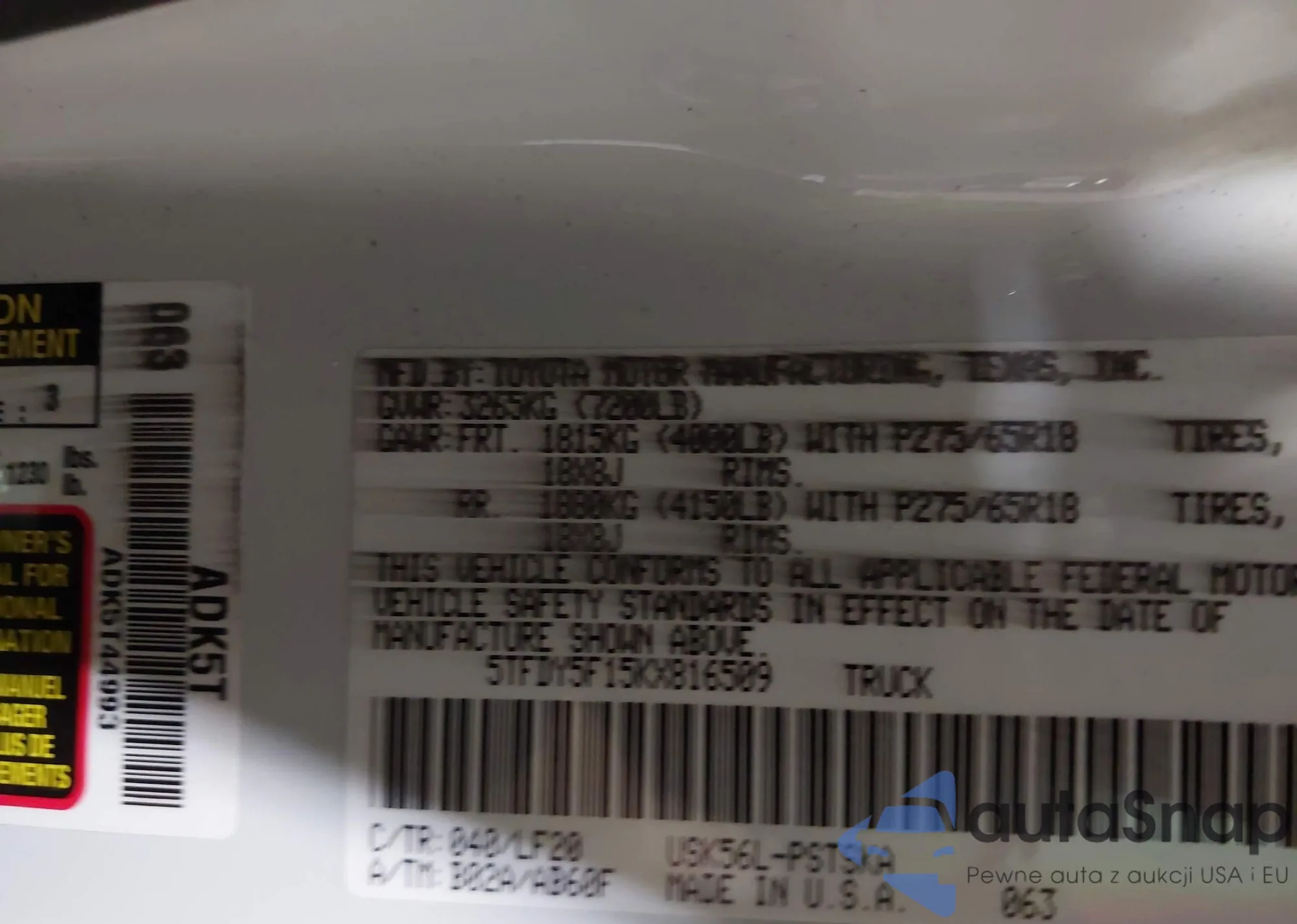 • VIN 5TFDY5F15KX816509