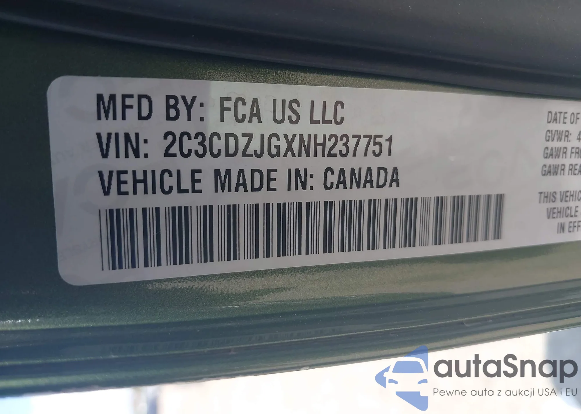 • VIN 2C3CDZJGXNH237751