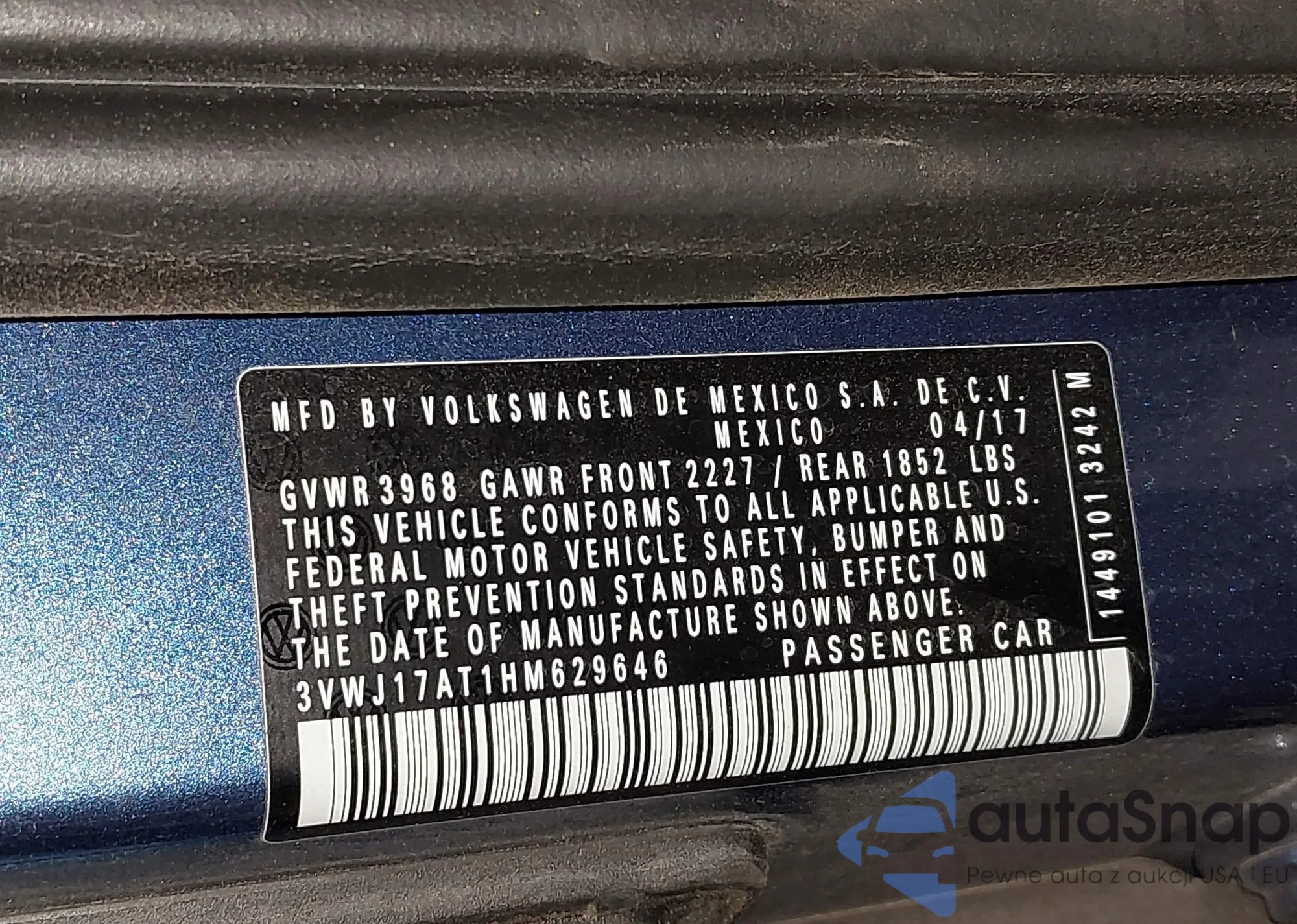 • VIN 3VWJ17AT1HM629646