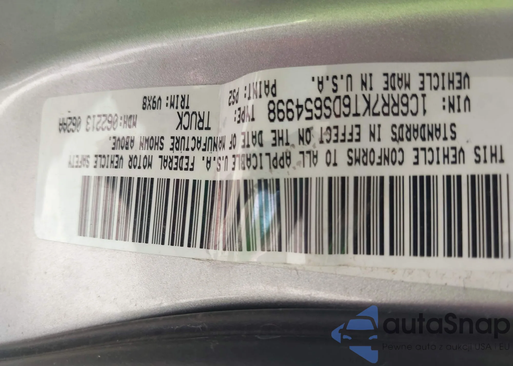 • VIN 1C6RR7KT6DS654998
