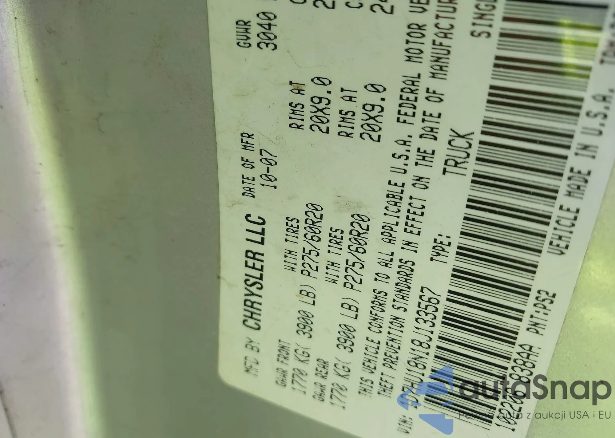 • VIN 1D7HU18N18J133567