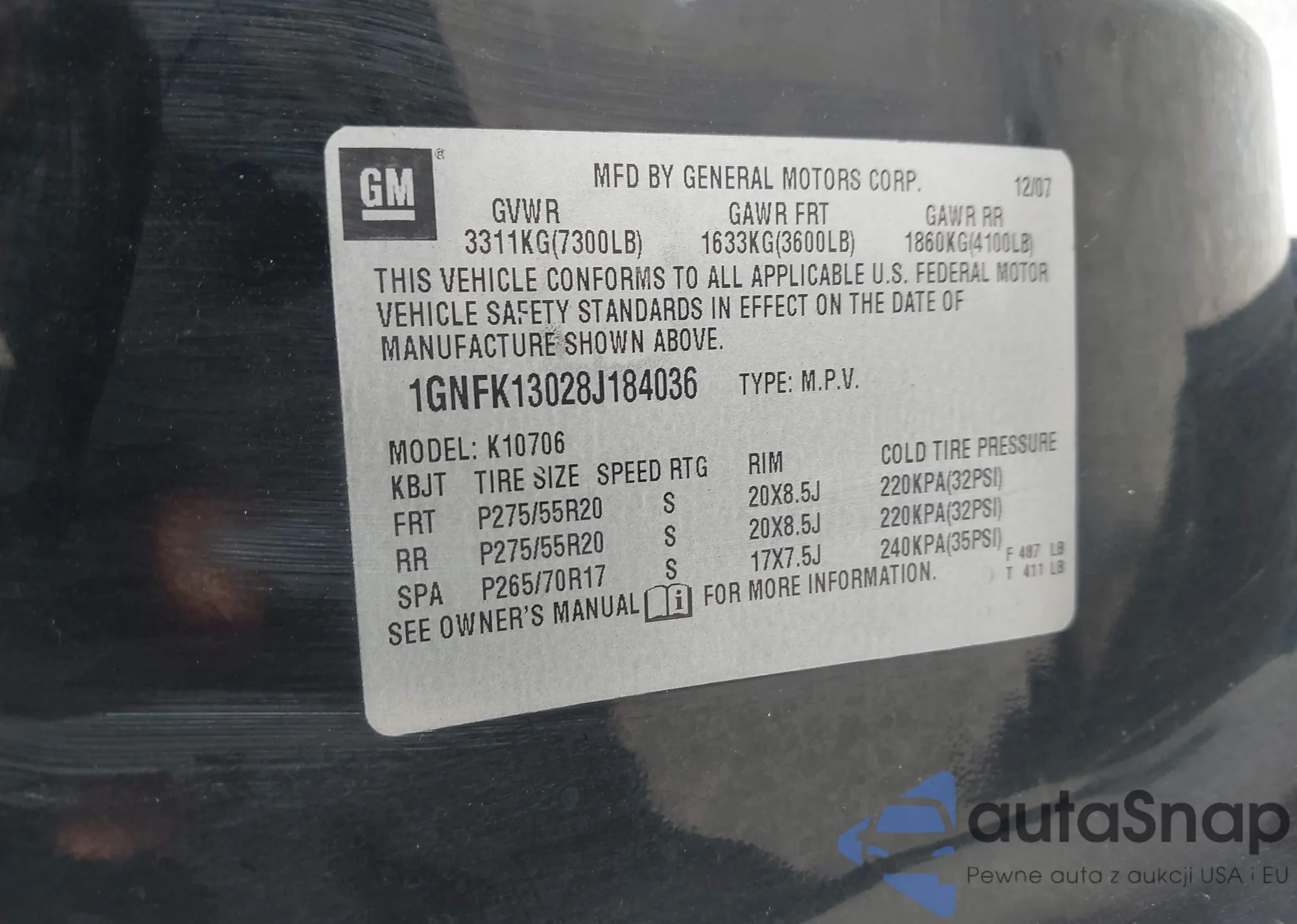 LOT: 43023784 VIN: 1GNFK13028J184036