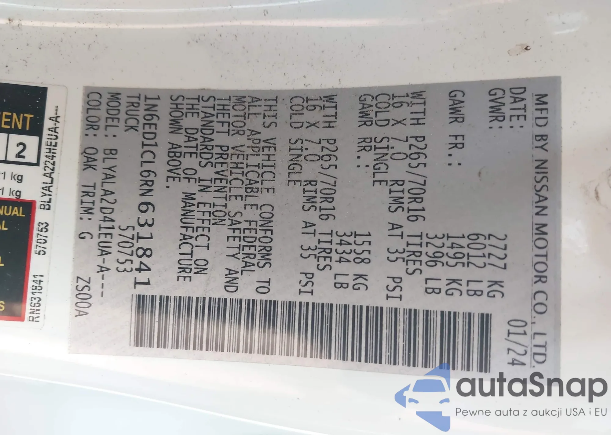 • VIN 1N6ED1CL6RN631841