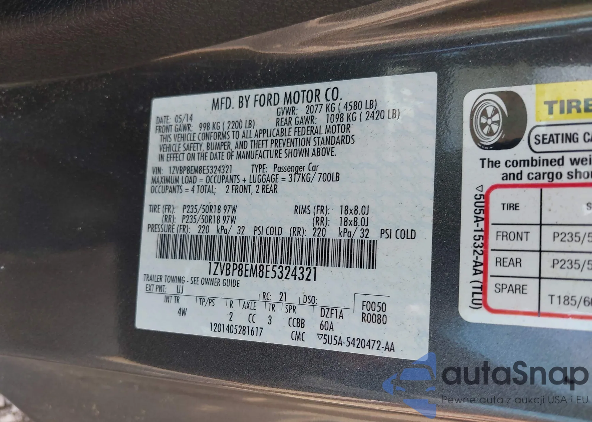 LOT: 43046493 VIN: 1ZVBP8EM8E5324321
