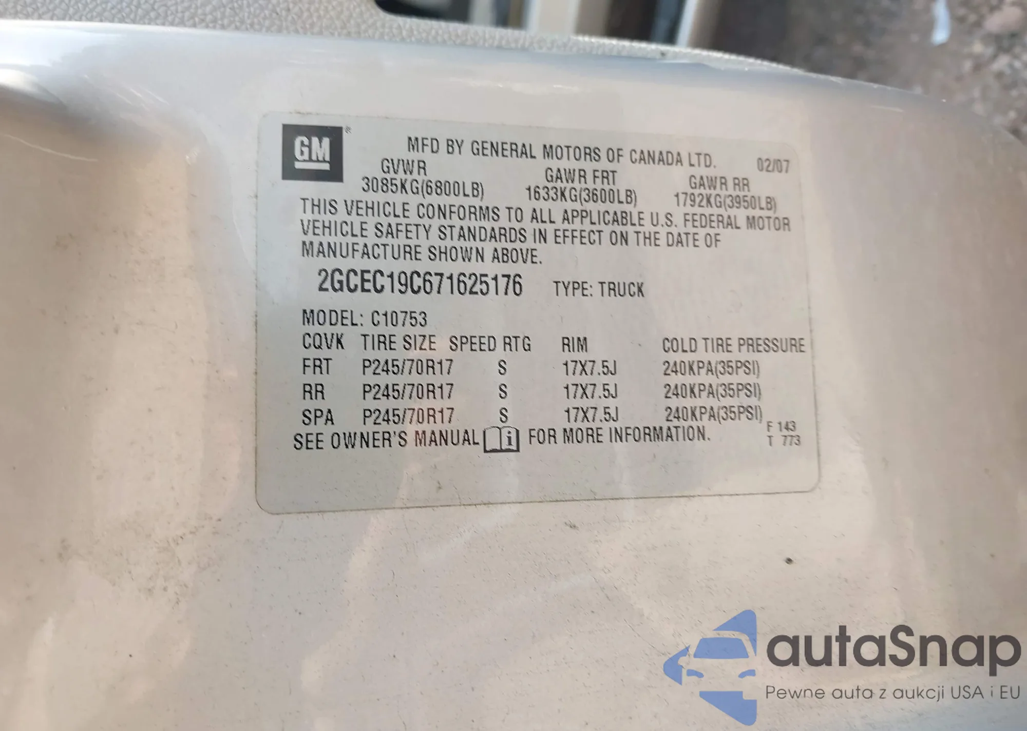 • VIN 2GCEC19C671625176