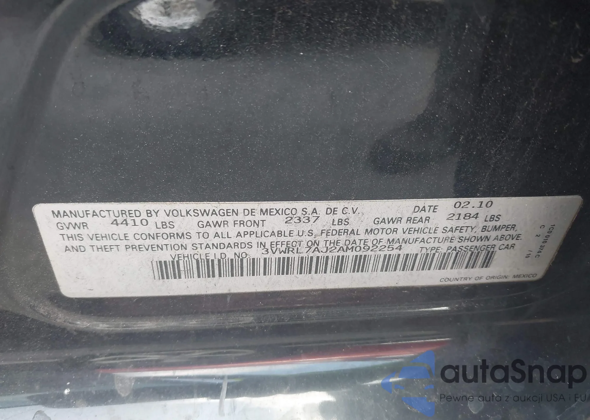 • VIN 3VWRL7AJ2AM092254