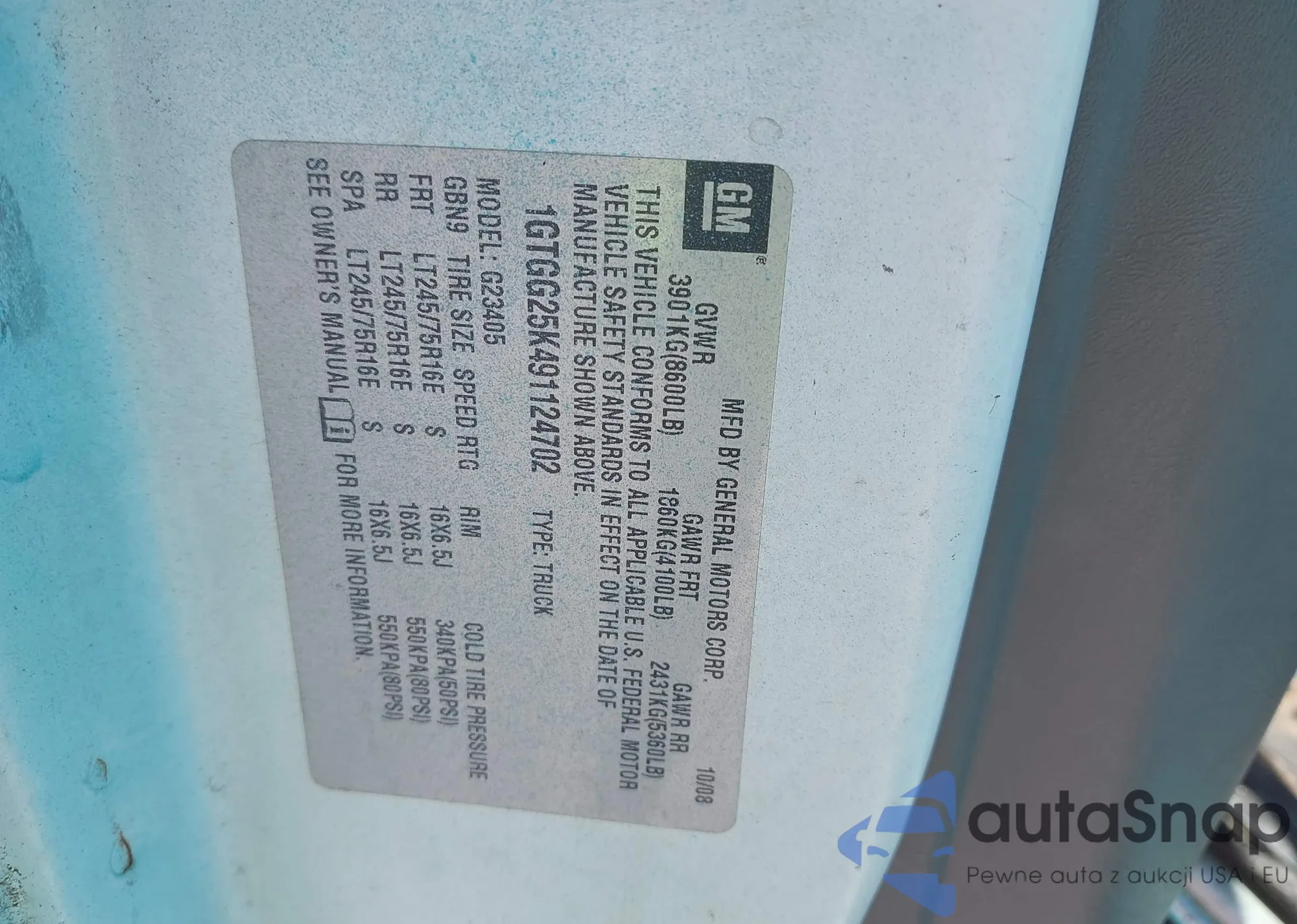 LOT: 43049364 VIN: 1GTGG25K491124702