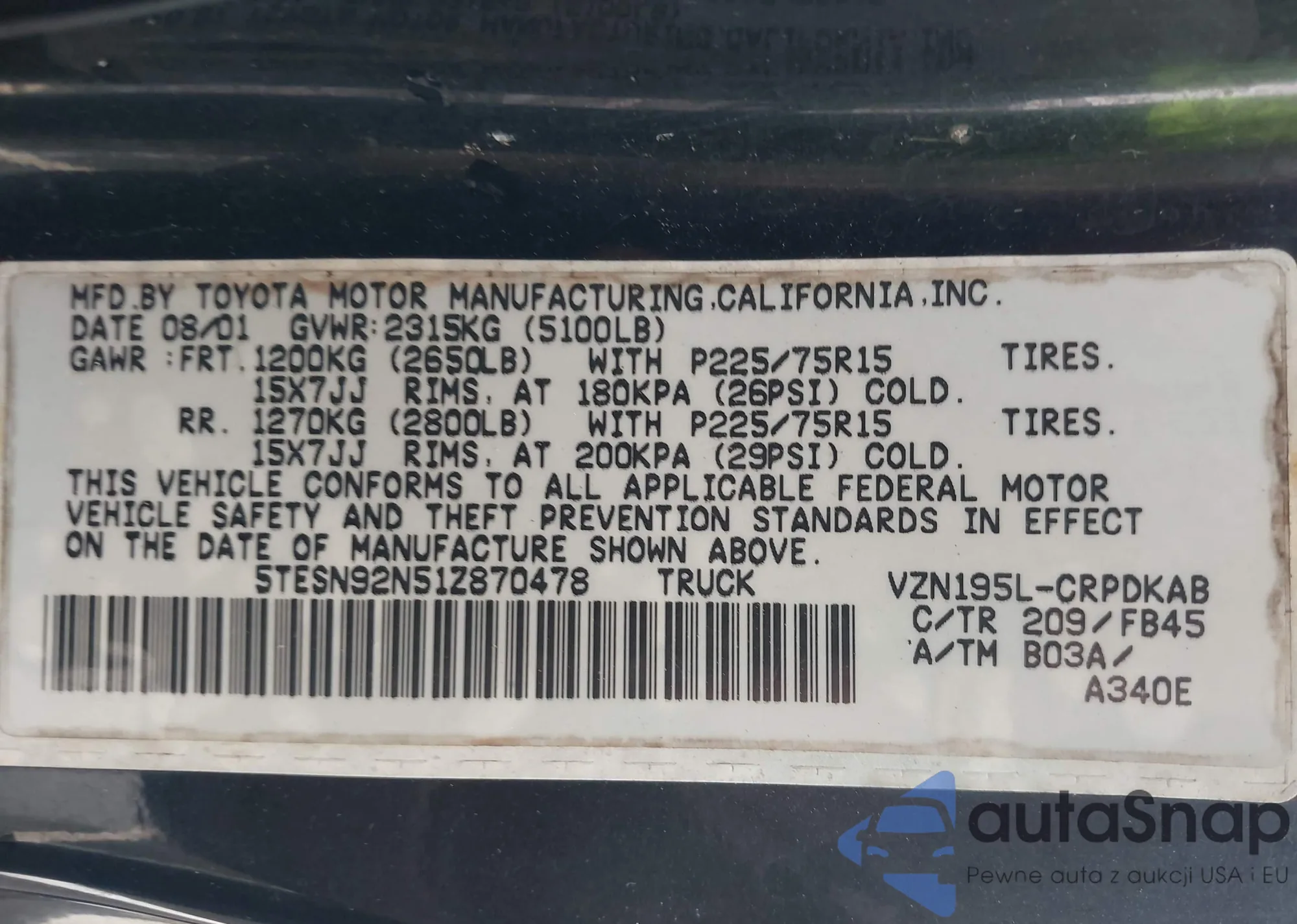 • VIN 5TESN92N51Z870478