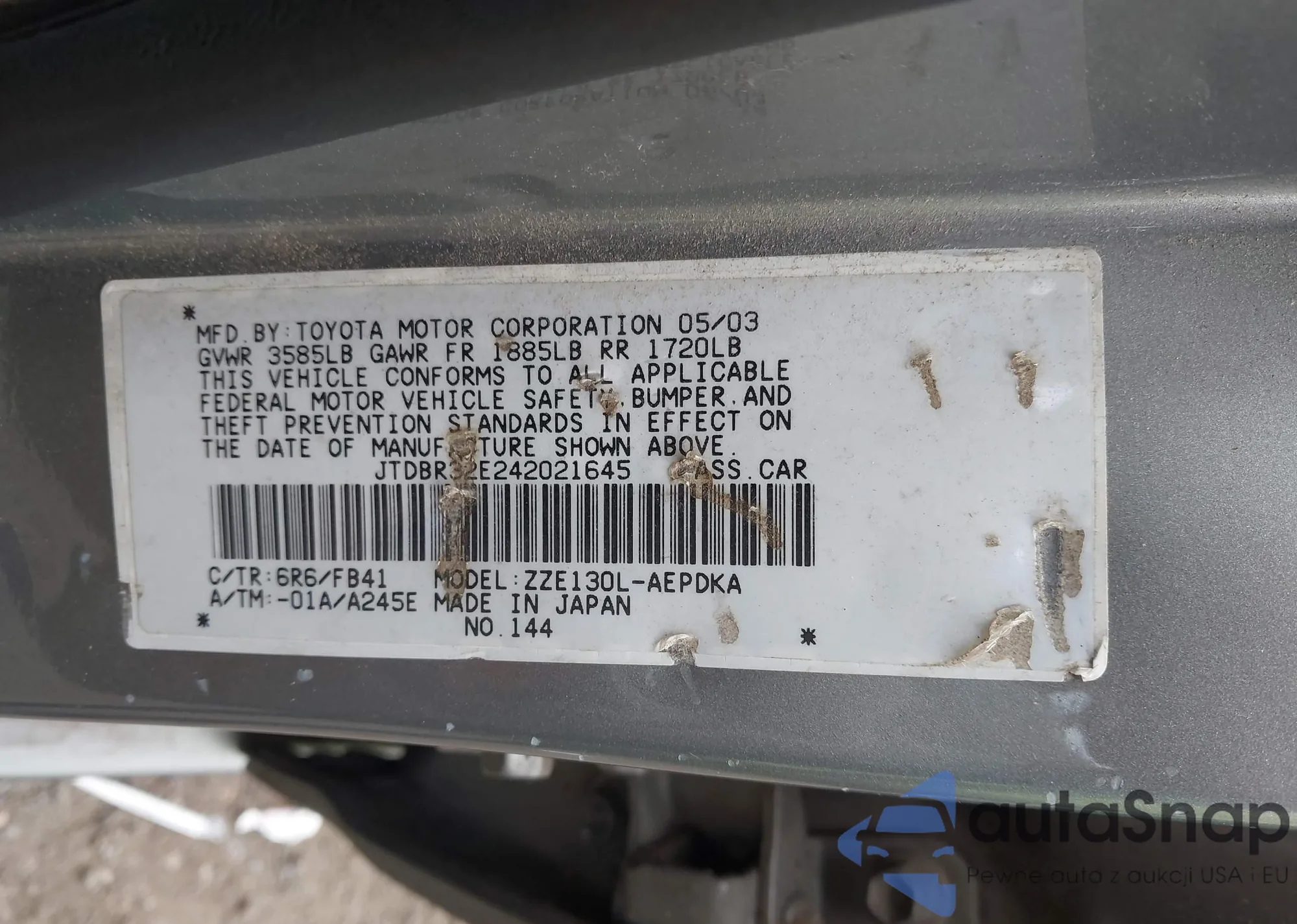 LOT: 42938024 VIN: 5TESN92N51Z870478