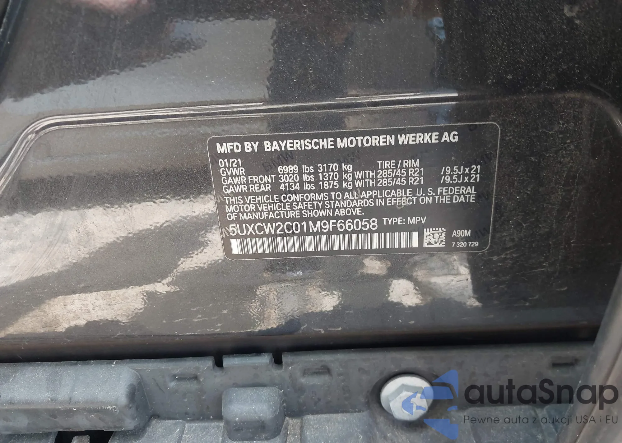 LOT: 42708721 VIN: 5UXCW2C01M9F66058