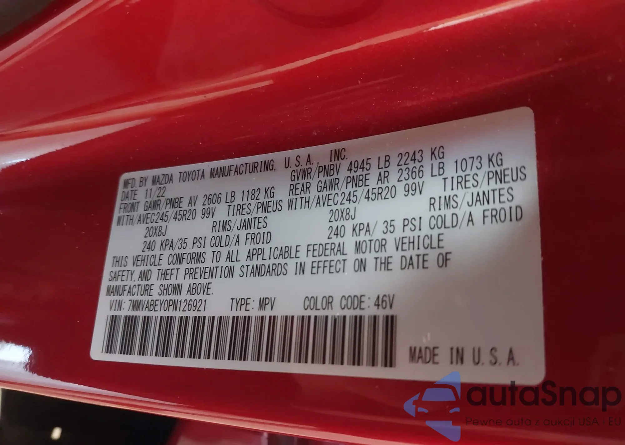 LOT: 42849231 VIN: 7MMVABEY0PN126921