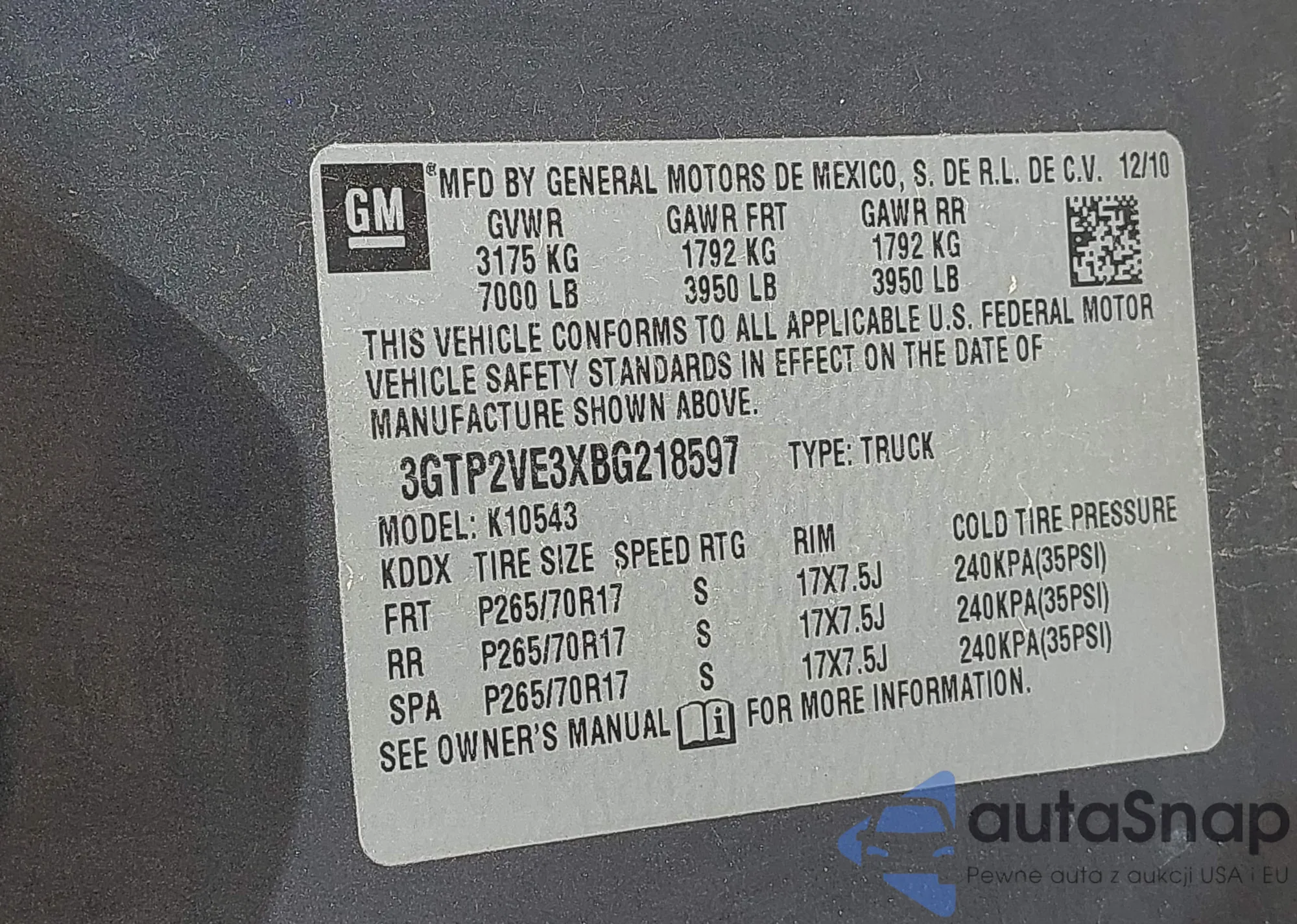 • VIN 4T1BD1FK9CU045698