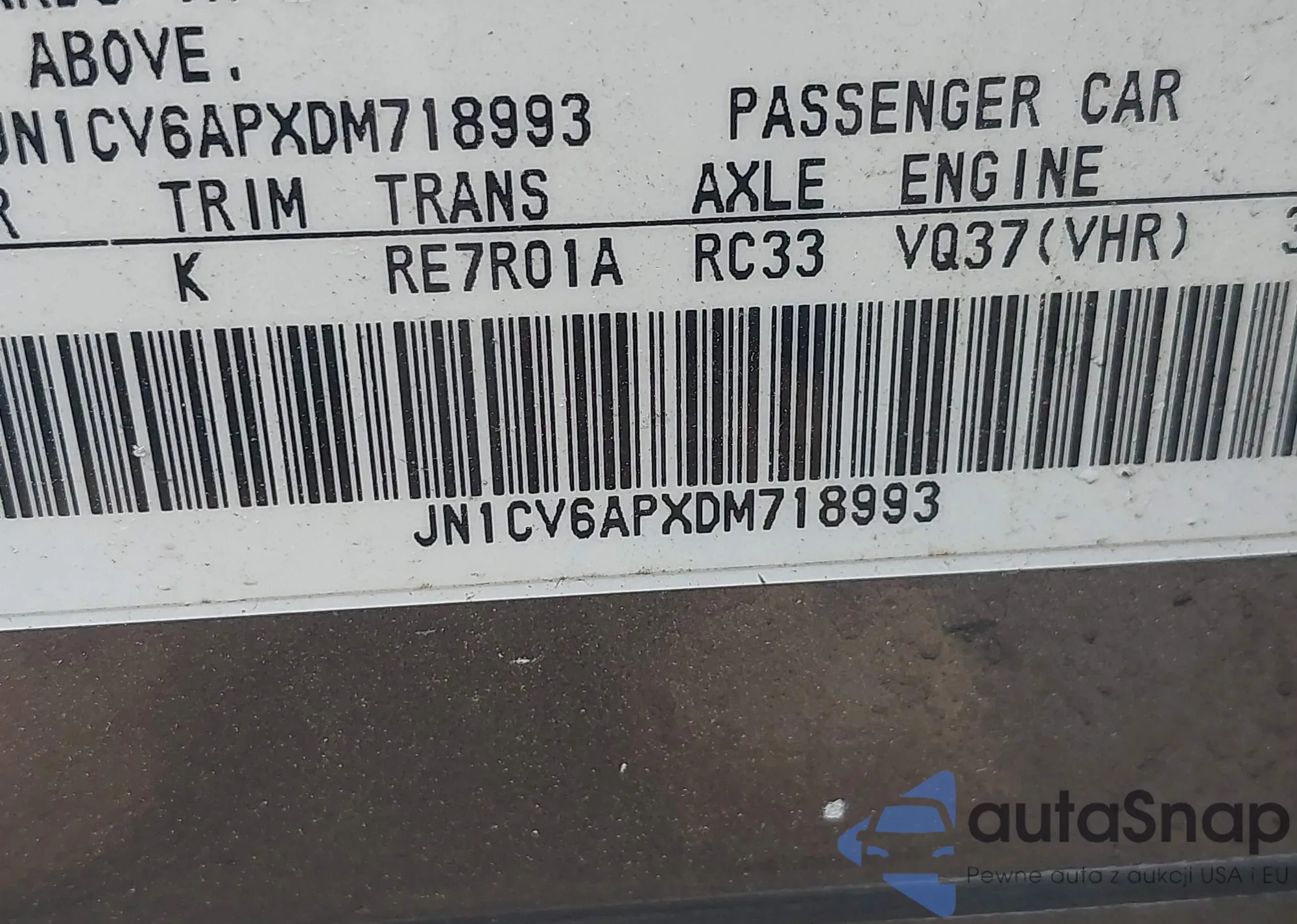 LOT: 42864931 VIN: JN1CV6APXDM718993