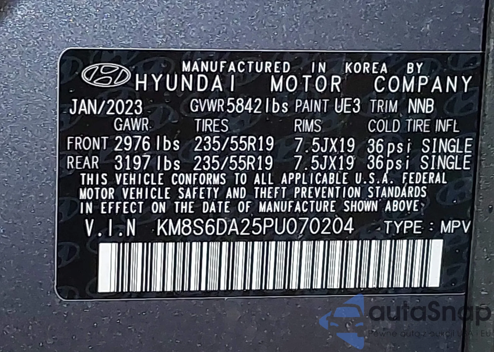 • VIN KNDCR3LE5P5059103